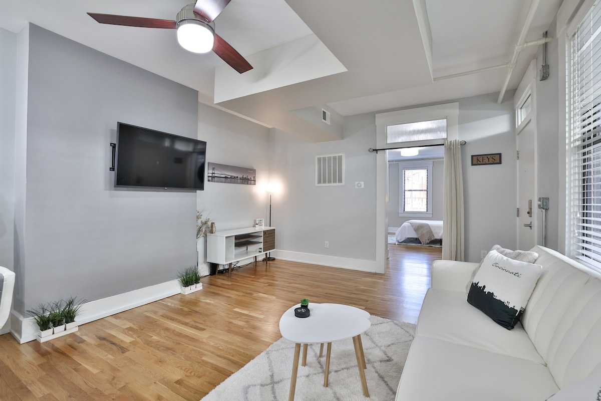 Top Floor One Bedroom Condo in the Middle of Cincinnati! Walking Distance to Everything the City has to Offer. Open Concept Living/Kitchen, One Bedroom and Sofa Couch, Sleeps up to 4 Guests. Perfect Space for Business Travelers, Those Looking to Explore Cincinnati or Residents Looking for an Alternative to a Hotel for a Night Out!