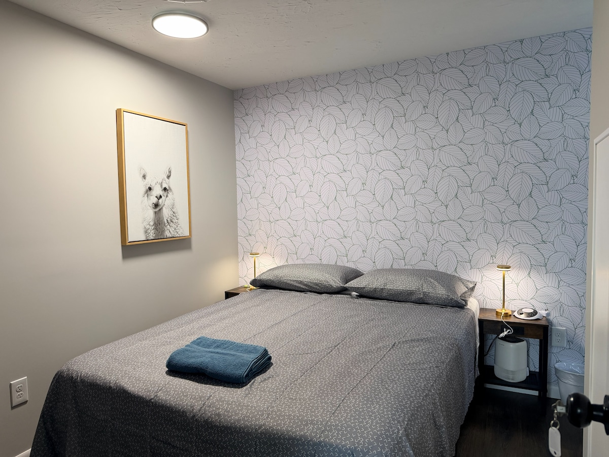 Enjoy the incredible views on a private deck overlooking downtown! Free electric car charging. Free off-street parking space monitored with 2 security cameras. With a large backyard, a safe tight-knit community, and off street parking, it's perfect for couples & families who need a yard and space to stretch out. 1 mile to hospitals, the university and downtown! The decor is modern and cozy with lots of natural tones and a mix of mid-century & nordic furniture with lush indoor plants.