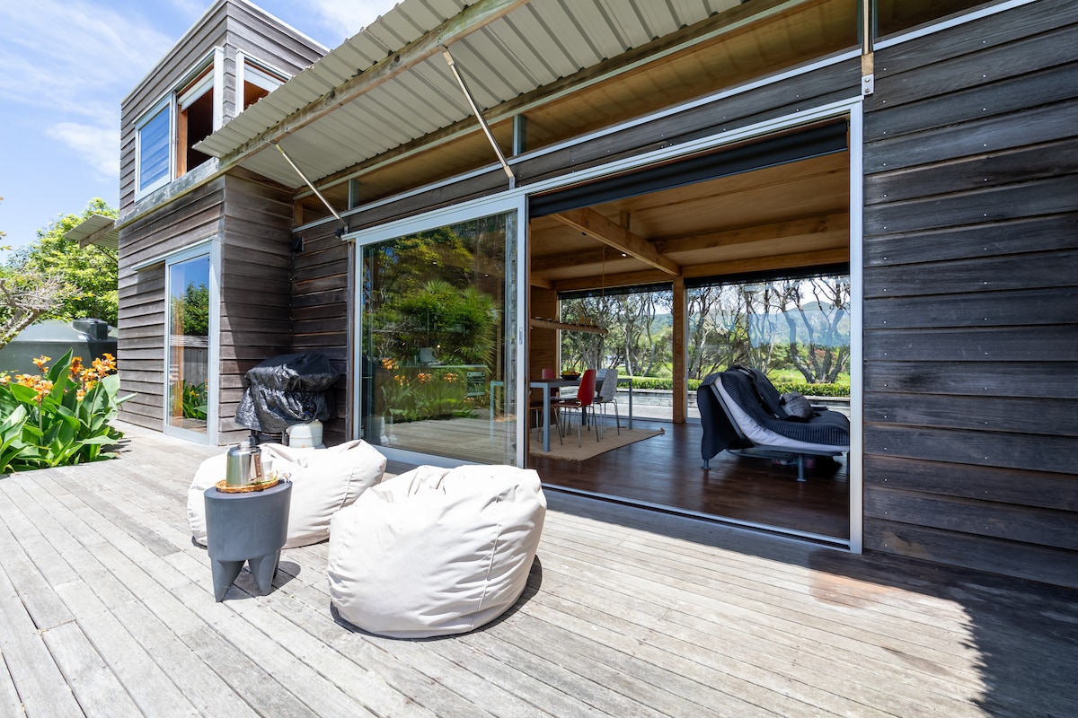 Brand new summer 2024: Wide views over Oruawharo Medlands and the ocean make this modern two-bedroom, two bathroom off grid beach house perfect for your beach hols. Architectural design, with sun decks in front and shade in the rear. Just 5 min. walk to the beach . Off-grid means no hair dryers or rice cookers, but with Starlink internet, usb charging points, filtered drinking water, and even a washing machine it's perfect for a longer stay or working holiday. So check the 7 day discount!