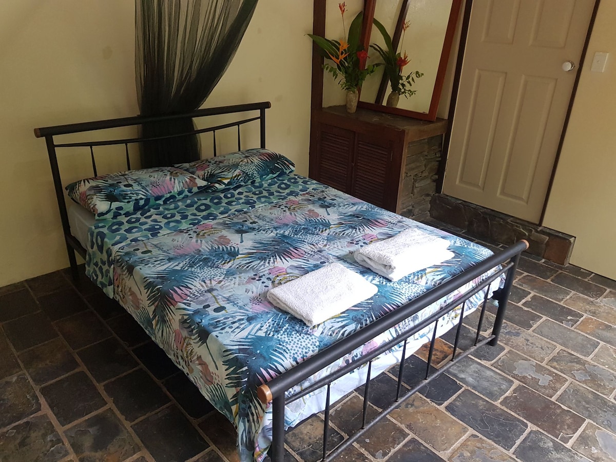 Daily rate is for a couple using the king bedroom. If you want to use an extra bedroom, it is $30 per person per night. Book at the extra person rate. Modern cottage in traditional Queenslander style, just a few minutes drive to the beach, to cafes, restaurants and retail shops. Relax on our organic fruit farm with stunning views to world heritage rainforest. There are little touches to make you feel welcome and comfortable. Plenty of room for families.