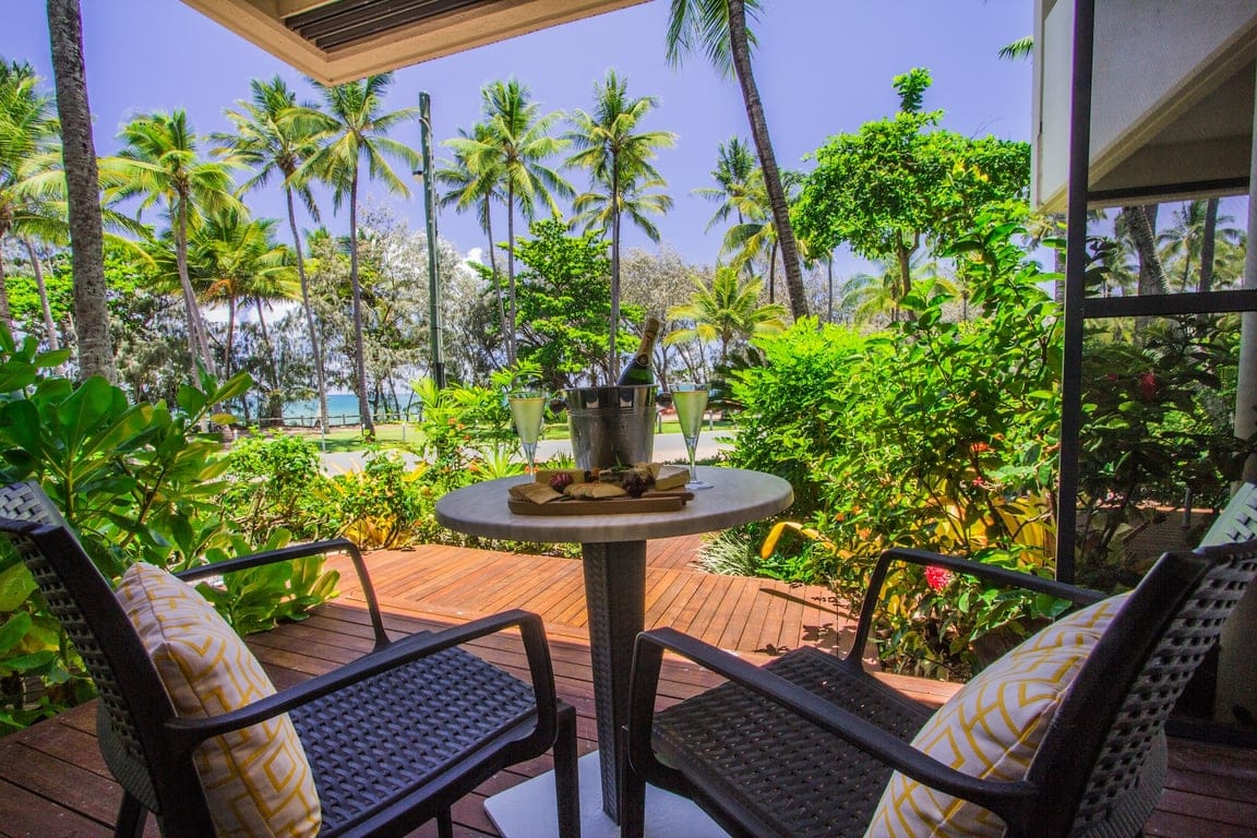 Peppers 5 Star luxury Beach front property in the heart of Palm Cove Ground floor with Pool Gate access Sleeps 2 people Luxury King bed, Fully A/C, Extra large TV Austar & Free wifi Ensuite with shower & toilet. Fully equiped Kitchenette with Fridge & Microwave Washing machine & dryer Private balcony with Spa Bath. Literally Steps away from the Beautiful Beach, where you can take a beach stroll or browse the array of fantastic shops and Restaurants Truely amazing Children Not Permitted