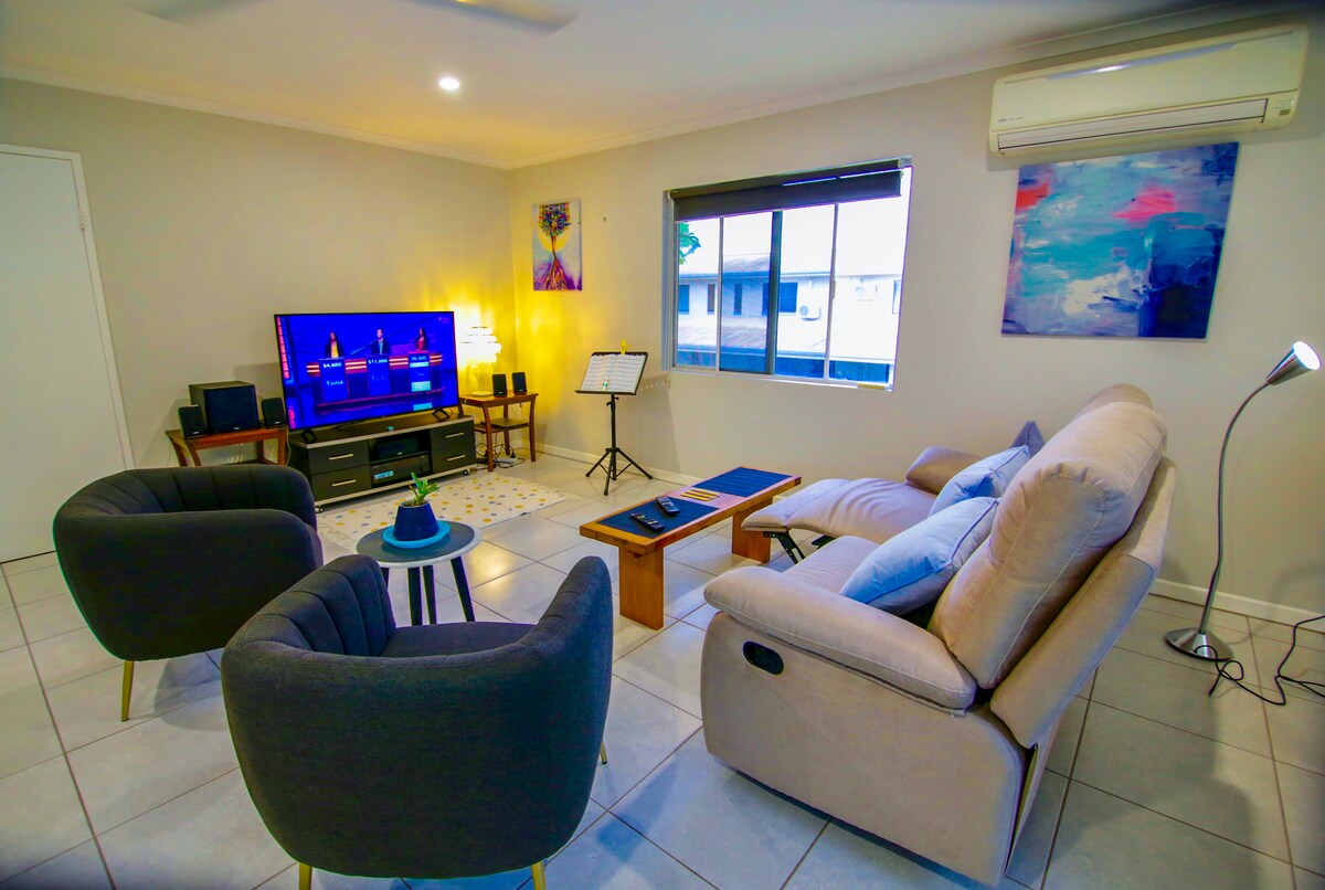 A beautiful, spacious, ground floor fully self contained 3-bedroom, 2-bathroom apartment in a gorgeous resort style complex. With 2 luxurious swimming pools, an outdoor BBQ and dining area, tennis court and private garden, this home is tropical living at its best! The apartment includes full kitchen, laundry, parking, high speed wifi, Netflix and a dedicated working from home space. Thoughtfully designed so that you can arrive with nothing more than your suitcase, relax and enjoy!