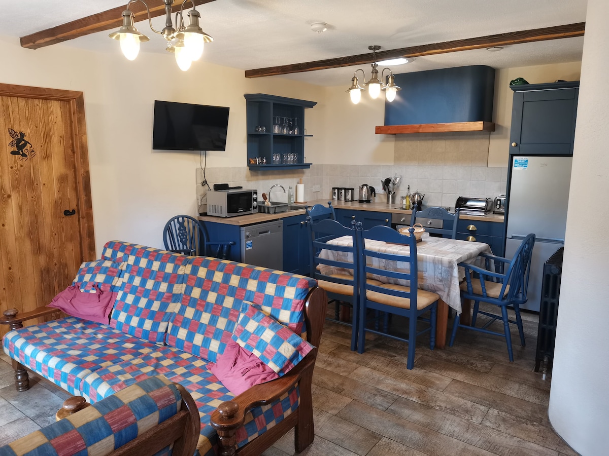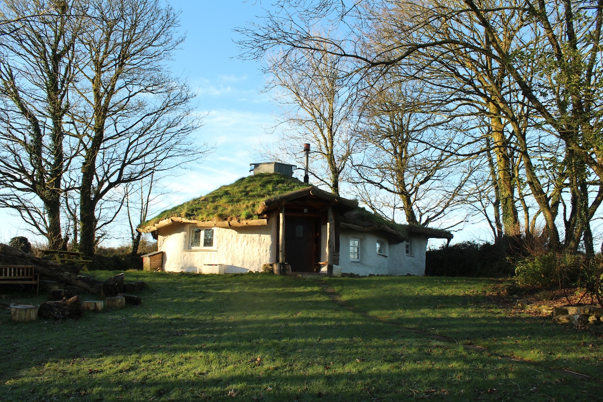 You'll love this romantic escape.Nestled at the end if our garden this beautiful host built cob cottage is cosy and different .The cottage has its own whimsical garden and a wrap around deck where you can relax in the hottub (Feb-nov) overlooking the countryside or cook up a storm on the patio kitchen . The openplan living space inside the cottage is enchanting with the round windows , glass bottle wall ,cob sofas and bespoke oak kitchen and a comfortable double murphy bed .Central heating .