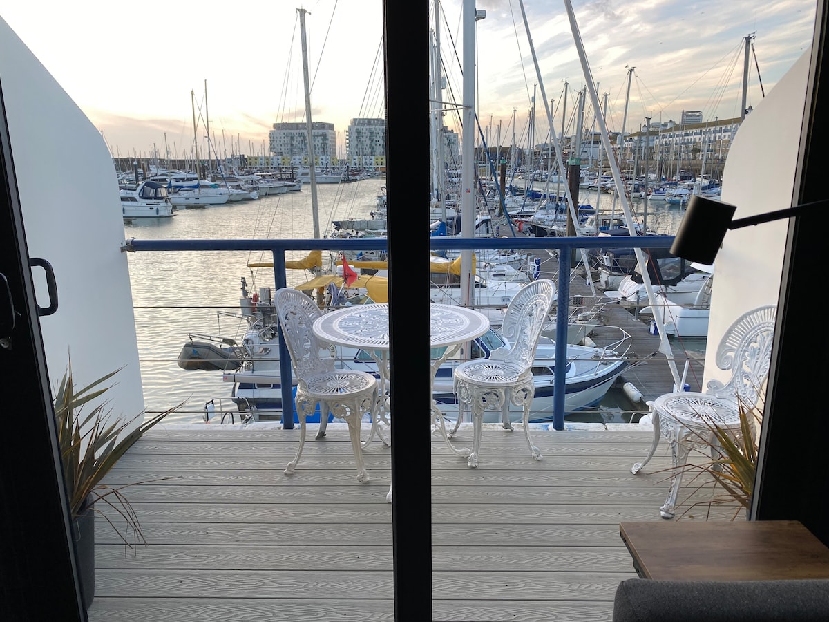 Enjoy a memorable stay in Brighton at our unique floating home on the Eastern Jetty of Brighton Marina with stunning views across the water and just a short walk to all of the restaurants, pubs & shopping in the marina complex There is free parking 2 mins walk from the apartment. Brighton centre is just a short bus or cab ride away Seascape has everything you need including quality bedding, coffee machine, cooking facilities, large smart tv and a great South/West facing balcony