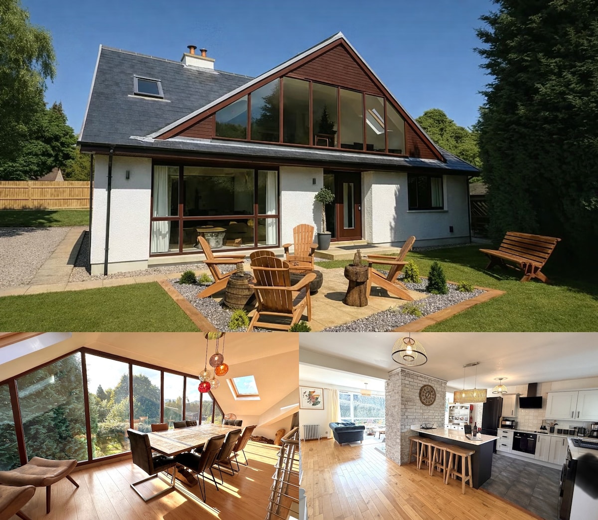 This stunning private Villa is perfect for families & for those longing for tranquility near the famous Loch Ness. The house sits in private grounds amid the Scottish Countryside. It is well equipped & the upstairs spacious living area with balcony allows you to enjoy watching the birds, deer & red squirrels who frequent the garden. Guests enjoy the woodburning stove, gas barbecue, outdoor firepit & games that are available. Our guests truly enjoy the house and its location.
