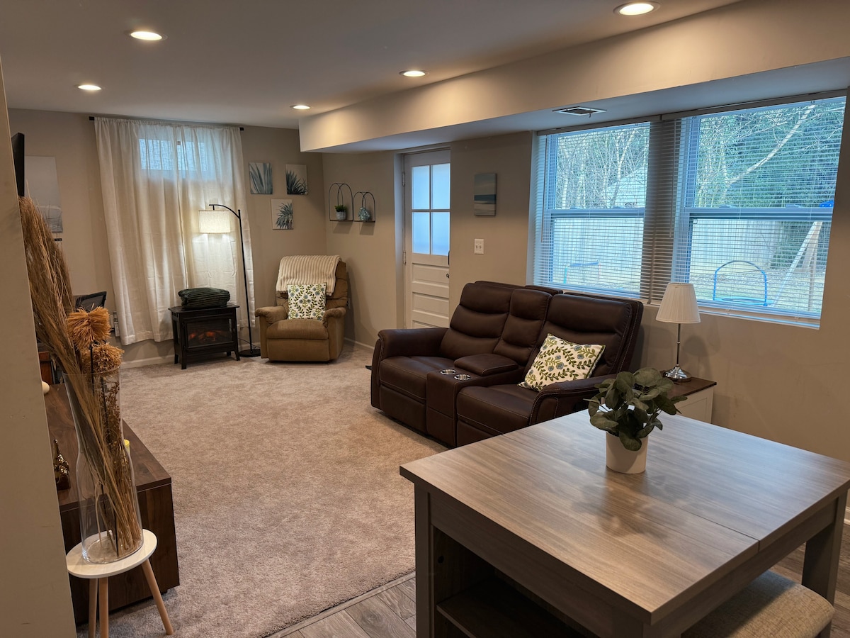 整个现代舒适的独立地下室,配备便利设施