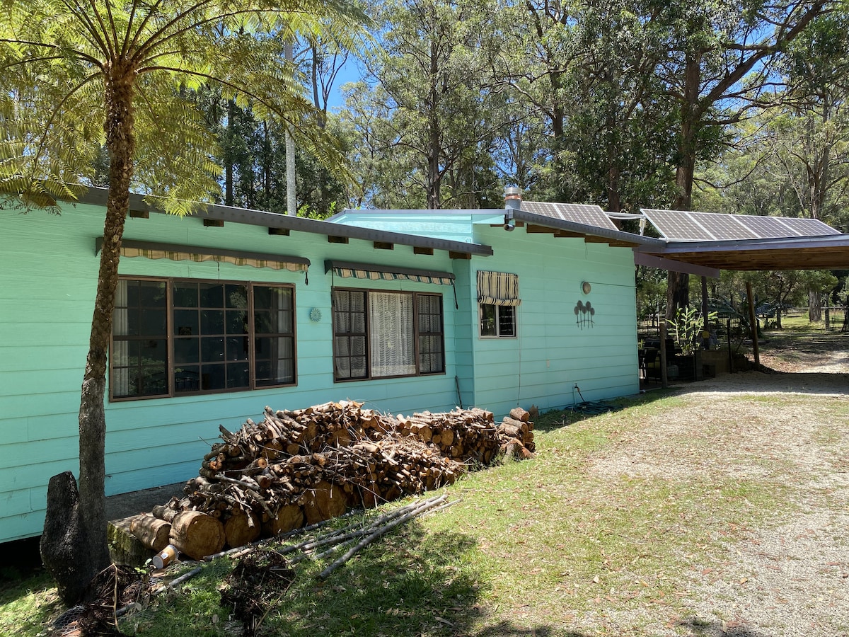 Get away from it all and immerse yourself in nature when you stay waterfront under the stars at the Romantic Gum Nut Eco Cottage. A scenic 15 minute drive from the vibrant hub of Pacific Palms ,enjoying good cafes ,restaurants and shopping .Swim and walk the pristine Seal Rocks beaches,also only 15 mins .Bungwahl Store is only 5 Mins away for essentials , barista coffee, a cold ice-cream,petrol and liquor.Only 20 mins to great local golf courses -SandBar and Bulahdelah. Not suitable for children