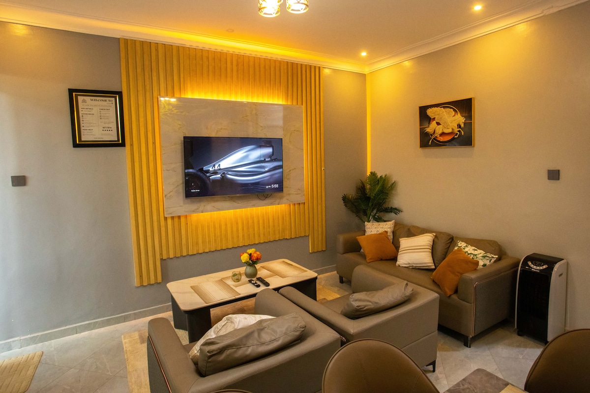 Located in the suburban Lavington area, this new and tastefully designed apartment is perfect for guests on business or leisure. The breathtaking views through the ceiling to floor glass windows welcomes a zen mood from either bedrooms or the living area. On a clear day you get to see the infamous wind turbines on Ngong Hills. Smart door lock installed that is both secure and eases check in. What You See is What You Get ;)
