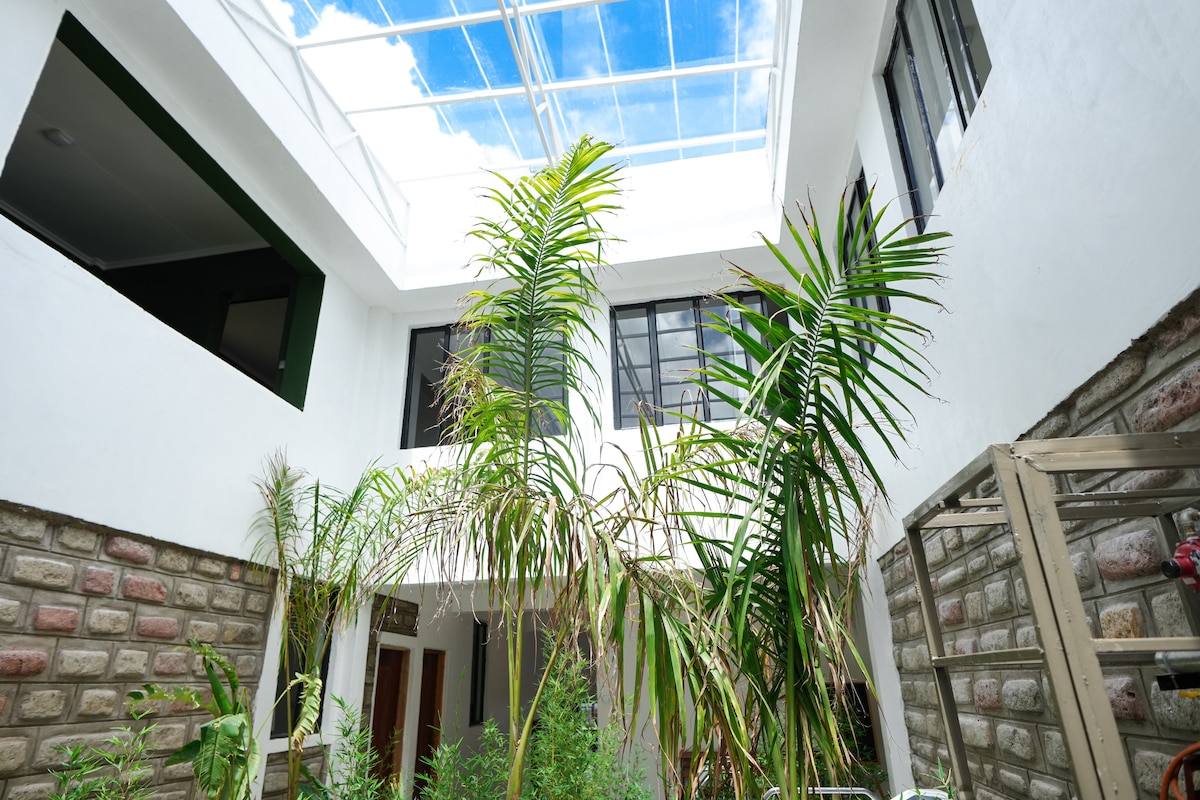 Your sunny, shipping container studio! Perfect stopover for solo travelers, whether for business or leisure Conveniently located just 30 minutes from the airport, the space is a short ride to Nairobi National Park, Giraffe Centre, malls, restaurants, and cultural sites It offers full privacy, and modern comforts, in the heart of leafy, secure Karen Enjoy a queen bed, stocked kitchenette, fast Wi-Fi, hot shower, garden space, laundry access and on-site caretaker Discount for stays 7+ days