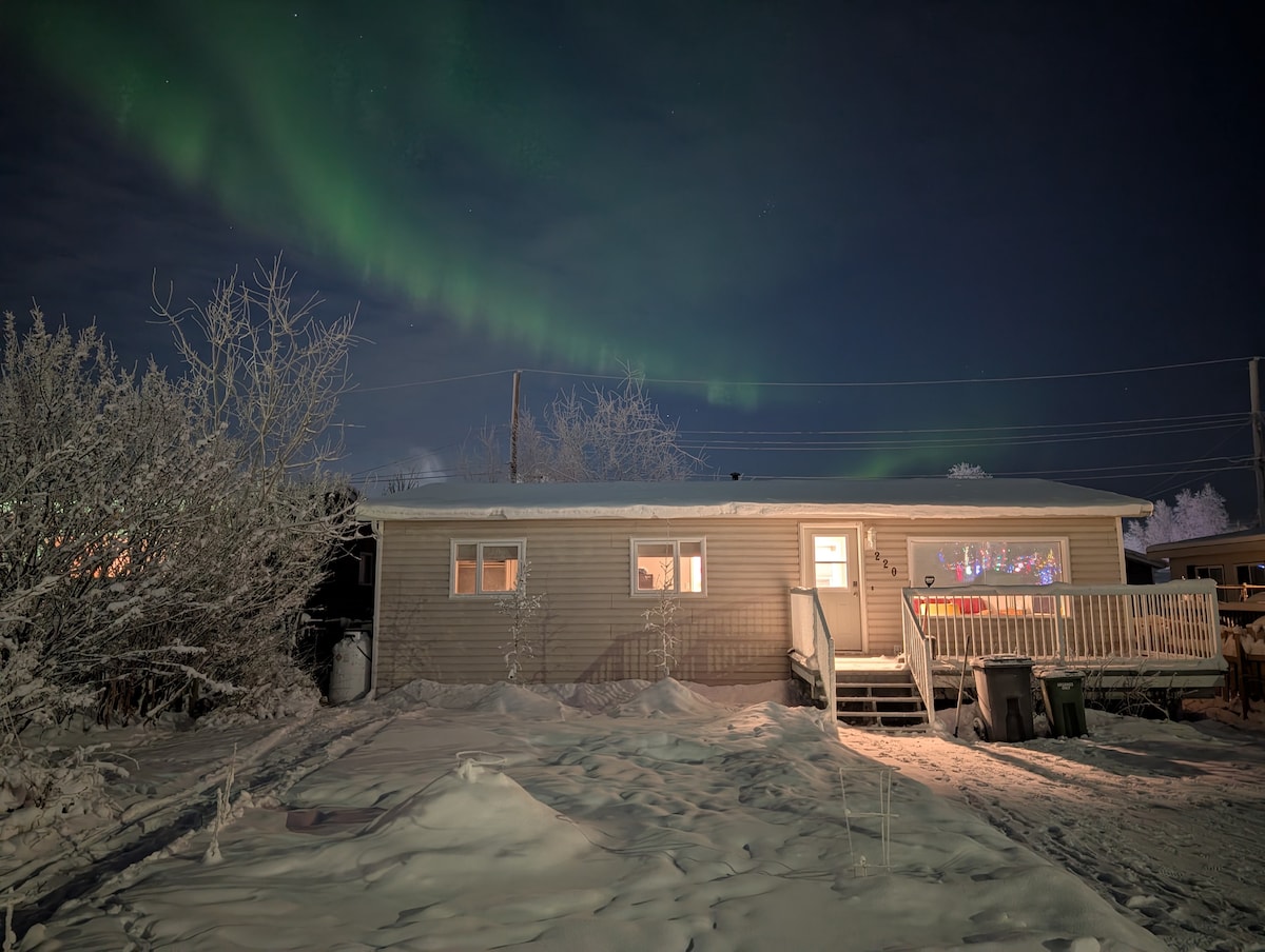 Welcome to your stylish house , centrally located retreat—ideal for all guest including ,corporate clients, tourists, and relocation staff. Steps from downtown restaurants and shops, this fully renovated home sleeps 6 with three bedrooms and one bathroom. The kitchen includes all essentials: dishwasher, stove, coffee maker. Relax on the large deck, perfect for warm-weather BBQs and Aurora viewing. A pizza takeout just behind the house ensures quick bites nearby.