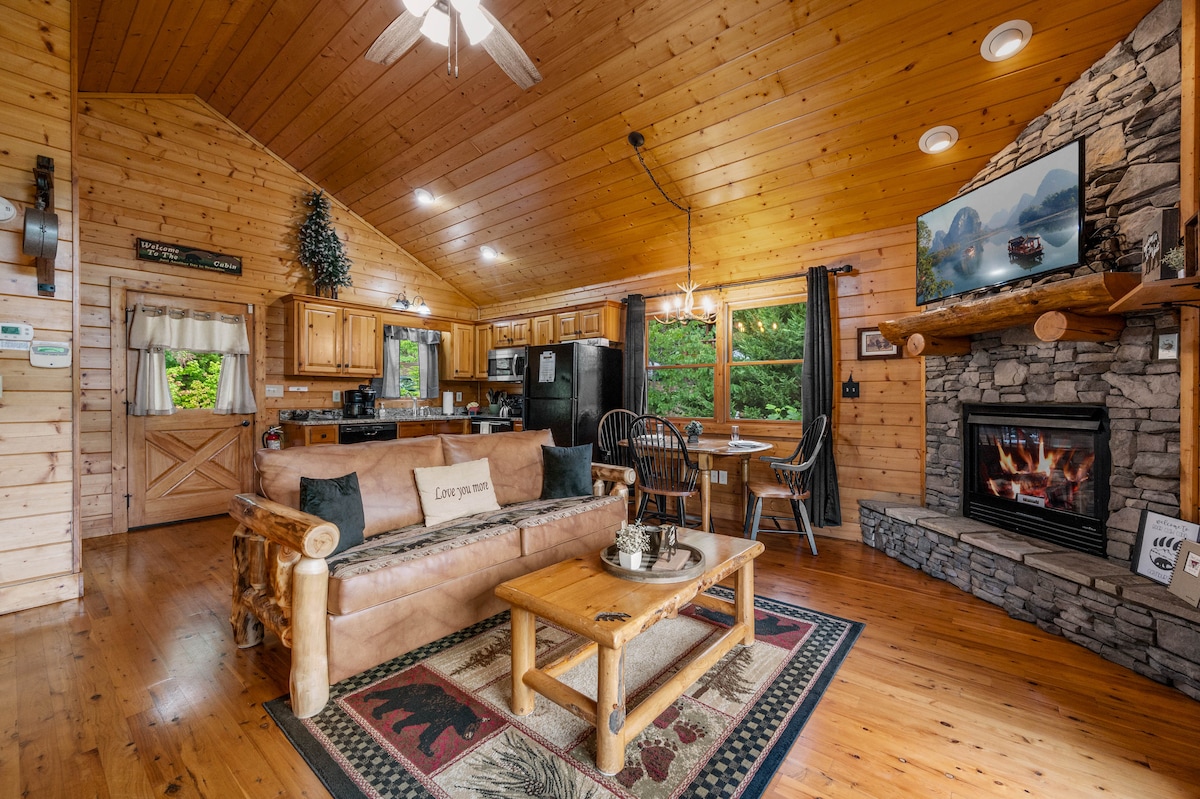 *2 miles to Gatlinburg and Pigeon Forge *Pool Table *Hot Tub *Bluetooth Jukebox *28" rain shower for two *Fireplace *King Size Bed *Queen sleeper sofa *55-inch Roku TV *Fast Wi-Fi *Jacuzzi Tub *Keurig and Drip *K cups and creamer *Privacy & Location *Robes *Luxury Bedding *Charcoal grill *Flameless candles *Romance package available($40) *Late check out 1pm($40) **Please note the cabin is tucked in the mountains. Some of the roads can be curvy and steep.