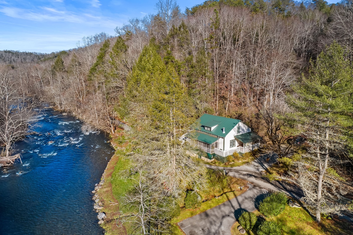 Riverside Relaxer w/Hot Tub+EV+firepit+Wifi & view