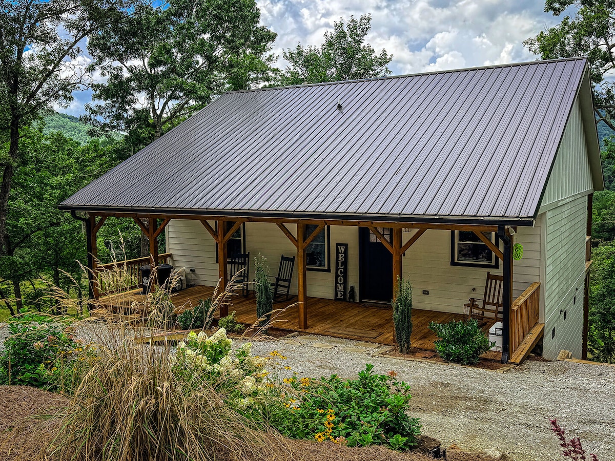 This custom home, built in 2020, is the perfect spot to unwind. Located off of a private road (4-wheel drive isn't necessary), it sits on 4.25 acres, w/gorgeous views of the Great Smoky Mountains. Once there, you truly feel removed from the world. Its modern, Scandinavian-Japanese design is unique to the area. Includes: master bedroom, sleeping loft (queen-sized futon and custom Twin XL bunk beds); open kitchen/living area, covered and open patios. 10 minutes from Bryson City and Cherokee.