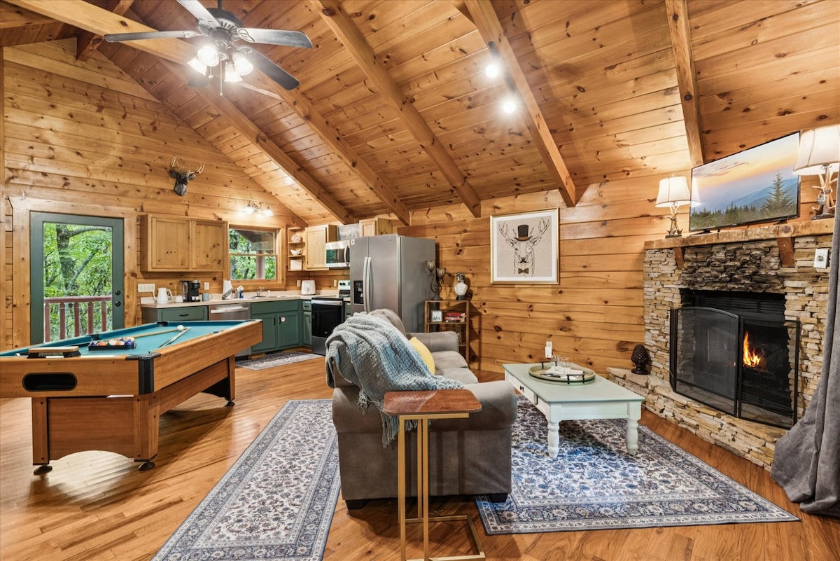 美丽的大烟山小木屋,带景观|游戏|壁炉