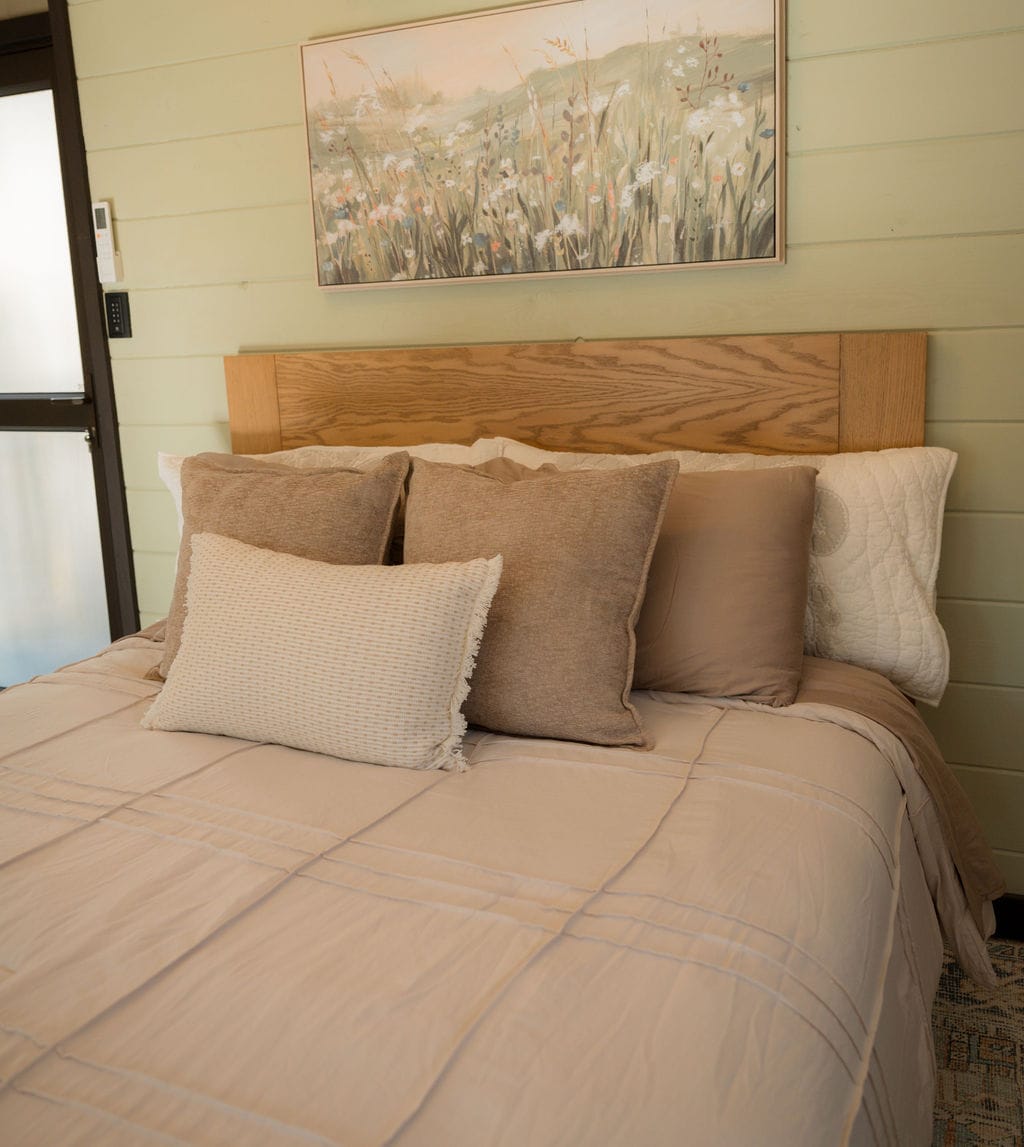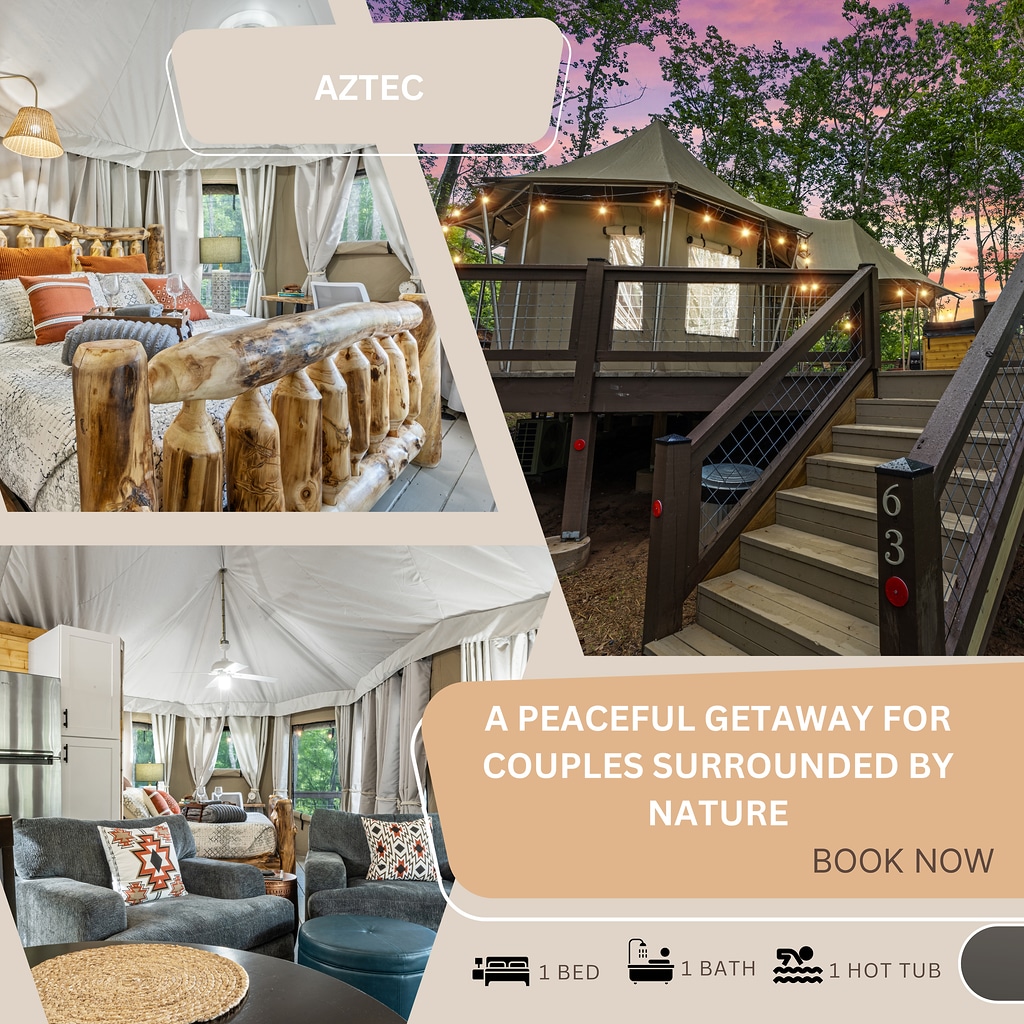 Escape to Tranquility, a luxury glamping tent at WYLDSTAY Smoky Mountains. Nestled along Douglas Lake, this retreat blends rustic charm with modern comfort—featuring a plush king bed, private en-suite bath, mini-fridge, coffee bar, and climate control. Step onto your private deck to enjoy peaceful views of the lake and mountains. Perfect for couples or solo travelers seeking rest, romance, and connection with nature near Pigeon Forge and Gatlinburg.
