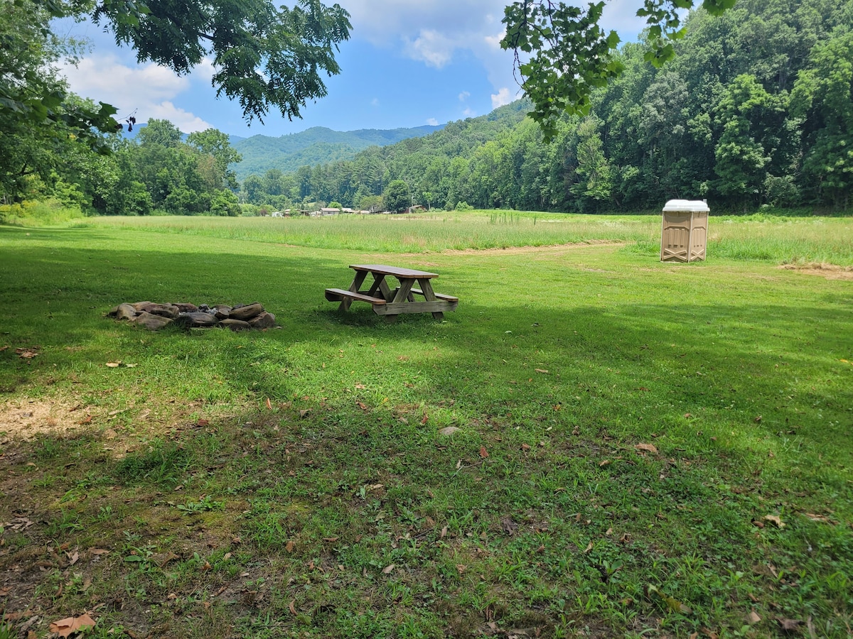 Right on the Valley River with amazing mountain views! Tent camping, dry RV camping, motorcycle, and hammock camping are permitted. The site includes access to a shared charcoal grill, picnic table, and porta potty. Please be sure to bag and dispose of all trash in the large bin when you leave. If you own a solar shower, there is a small spot to hang one, but there is bathhouse access available. Feel free to contact us with any questions!