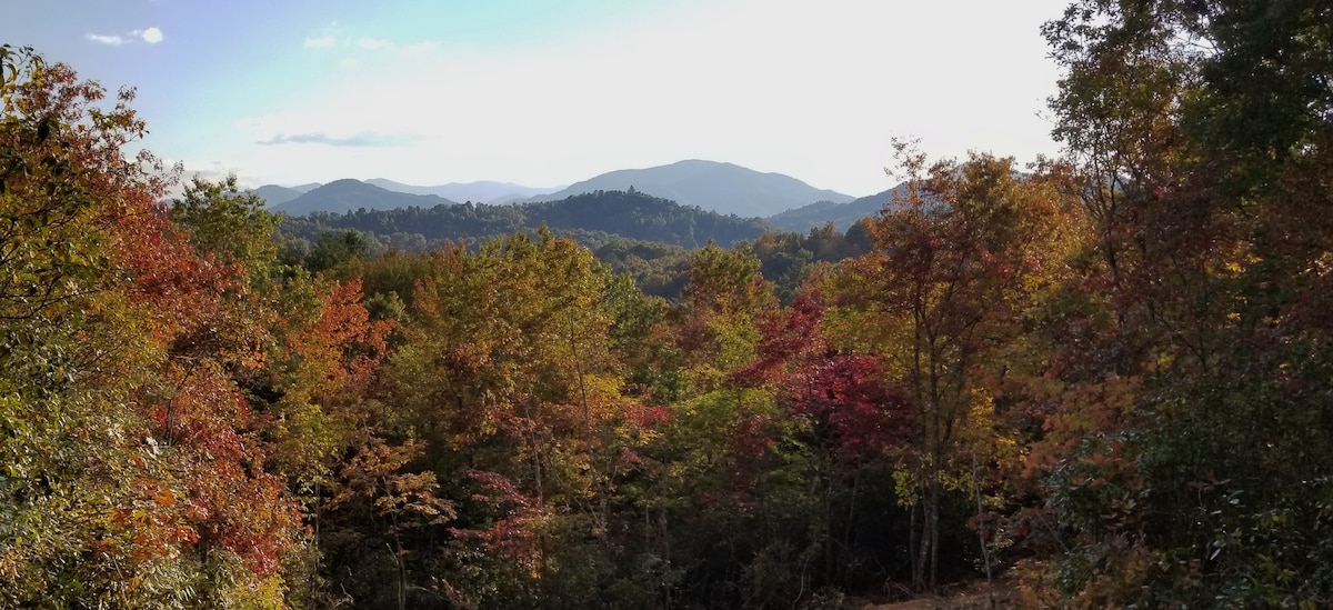 We are open! Sit in the rockers with your morning coffee, eat your meals at the kitchen table or sit in front of the fireplace all while enjoying the amazing view! The hot tub is located on the deck overlooking the beautiful Mountain View. We are just 20 minutes away from Bryson City and the Nantahala Outdoor Center, 10 minutes from Tsali Recreation, 25 minutes from the Smoky Mountain National Park, Cherokee and The Blue Ridge Parkway. There is a book in the cabin with other recommendations