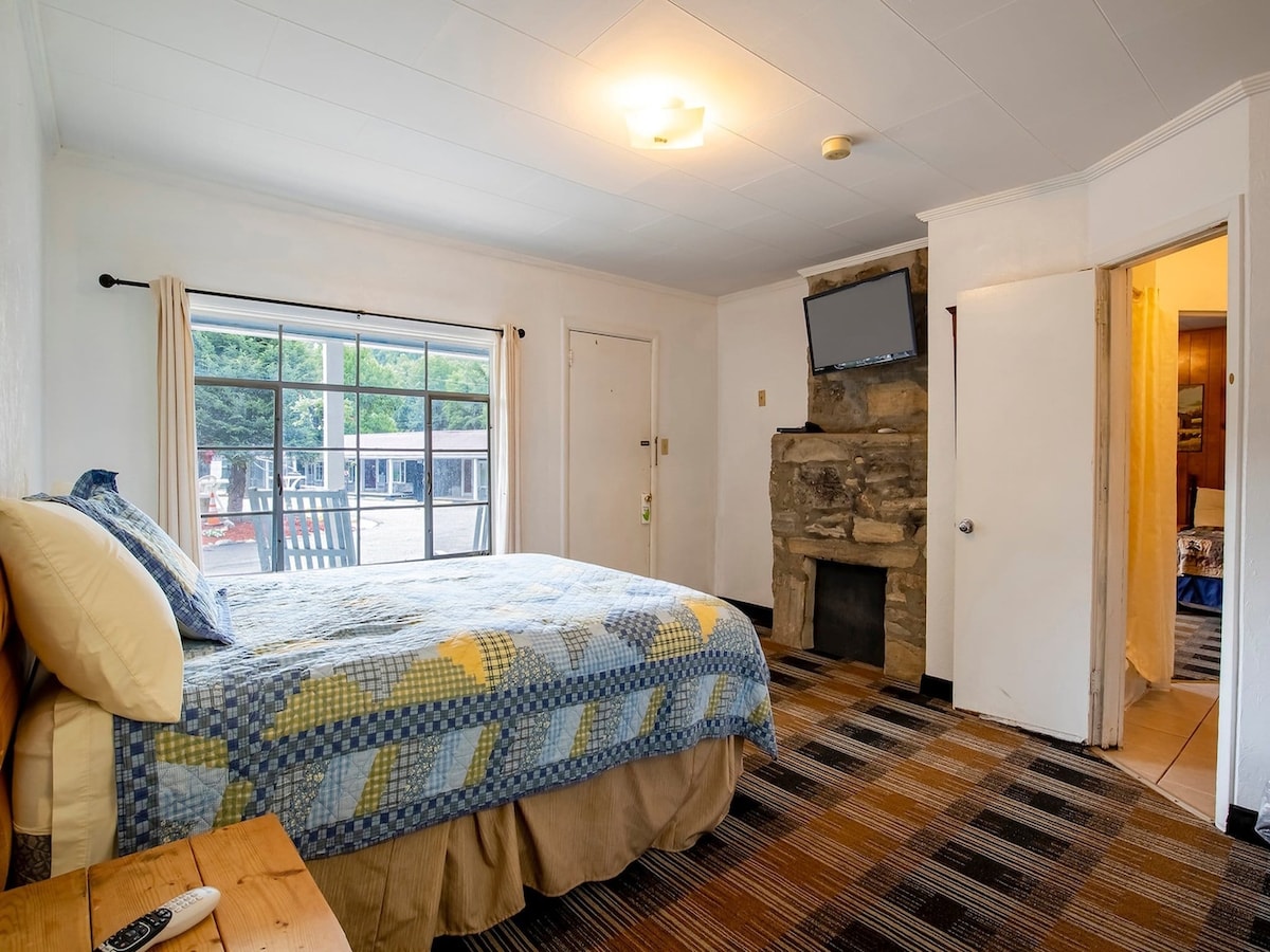 Welcome to the Hygge Hus Hotel in Andrews, NC! Our newly renovated King Suite embodies the Danish concept of “hygge”—coziness, comfort, and well-being. Enjoy a king bed, small pullout sofa, two mirrored closets, and a dining/workspace for two. The full kitchen includes a fridge, microwave, induction hotplate, and a coffee maker for Keurig and full pots. Can be connected to #2 Double Room, with coin laundry on-site. Your perfect mountain retreat awaits!