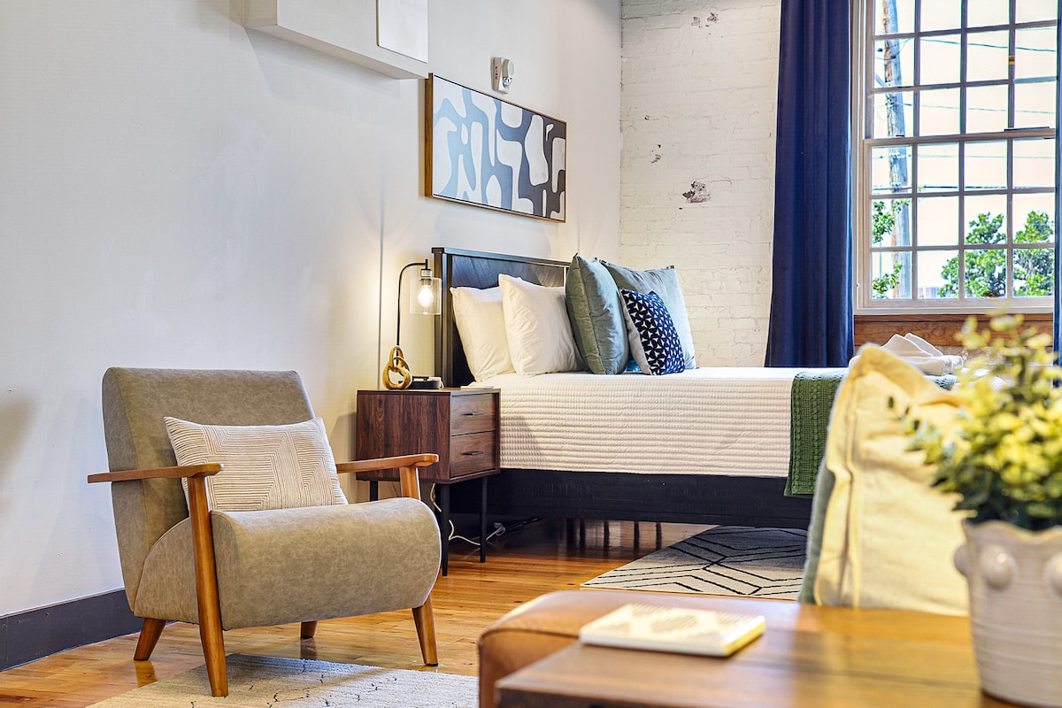 Stay in the heart of Knoxville's Old City at our luxurious condo in the historic White Lily Flats, originally dating back to 1885. This modern, second-floor unit blends charm with convenience, featuring a King bed, pull-out sofa, game table, smart TV, and full kitchen. Perfect for exploring downtown and the Old City, it includes free parking and is within walking distance of all major attractions. Experience luxury and a piece of Knoxville's rich history with all the comforts of home.