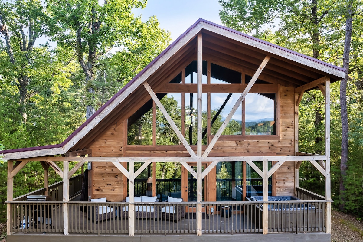 See why this cabin is Top 5% on Airbnb! Gorgeous, 1 mile to parkway and the Island! 2 spacious King Master Suites for a restful night. 2 full private bathrooms, sleeper sofa, sauna, hot tub, game room and fire pit! LOTS of amenities. You will love this open 1 level, 3 sets of French doors to the private balcony. Relax on the front porch with valley views or enjoy the hot tub in the large backyard space. The living space has high ceilings and a cozy fireplace for a retreat.