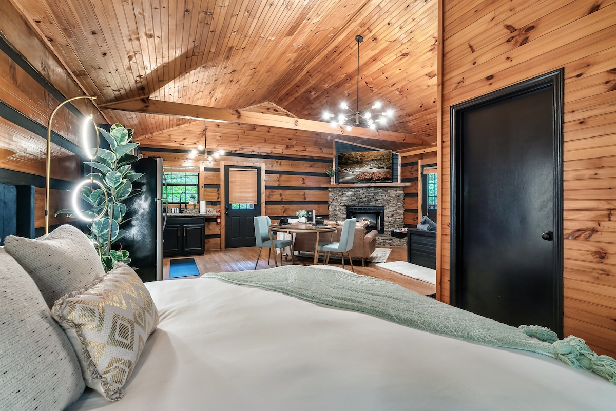 This dreamy two-bedroom cabin blurs the lines between indoor and outdoor living. With outdoor lounge spaces, a bubbling hot tub, and stunning nature views, this charming cabin is the perfect way to experience Tennessee's natural beauty. Designed to be an intimate getaway surrounded by nature, it’s ideal for honeymooners and small families. 18 Min Drive to Anakeesta 25 Min Drive to Dollywood 26 Min Drive to The Island, Pigeon Forge Experience Sevierville With Us & Learn More Below!