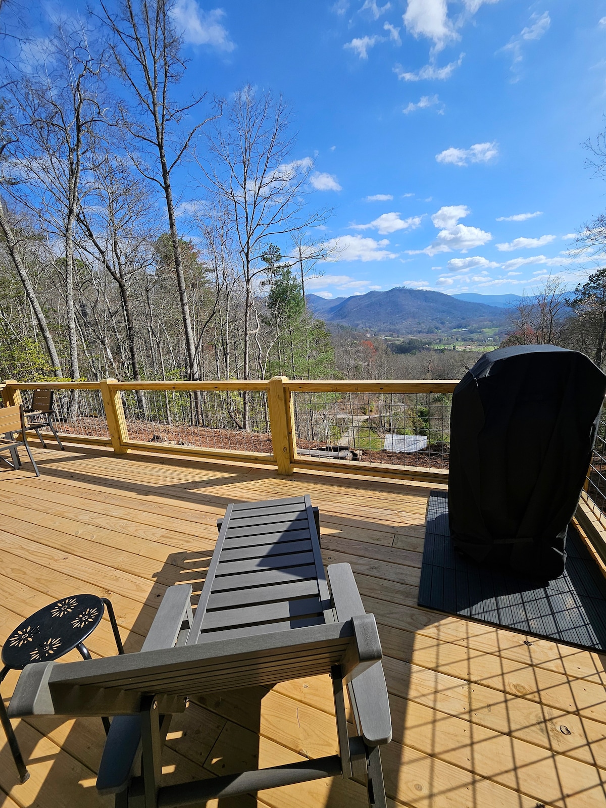 We are open! Sit in the rockers with your morning coffee, eat your meals at the kitchen table or sit in front of the fireplace all while enjoying the amazing view! The hot tub is located on the deck overlooking the beautiful Mountain View. We are just 20 minutes away from Bryson City and the Nantahala Outdoor Center, 10 minutes from Tsali Recreation, 25 minutes from the Smoky Mountain National Park, Cherokee and The Blue Ridge Parkway. There is a book in the cabin with other recommendations