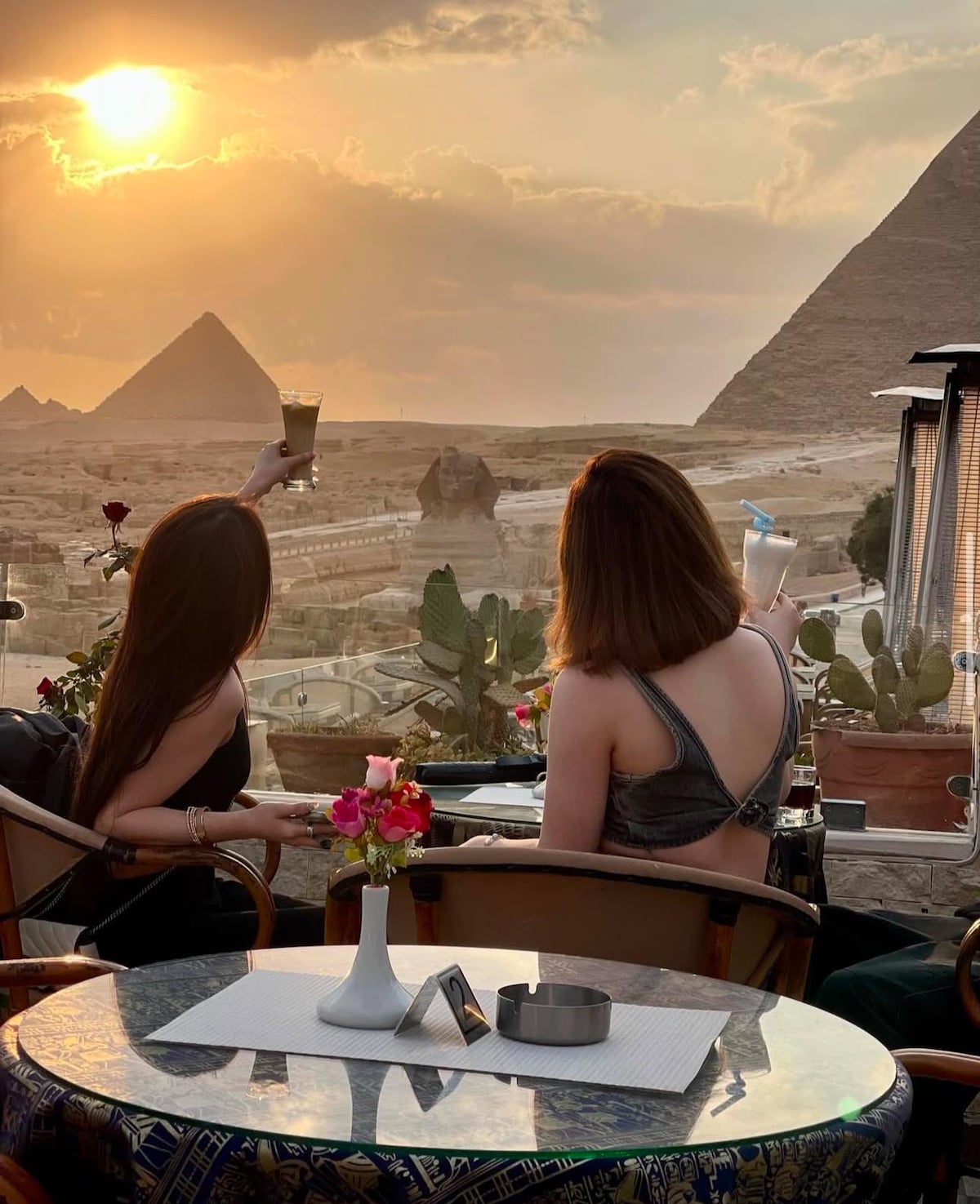 Experience a once-in-a-lifetime stay at [ Cleopatra’s Suite With Jacuzzi ] Pyramids View, a private and stylish studio offering a direct, uninterrupted view of the Great Pyramids of Giza — right from your window, balcony, or even your private jacuzzi.