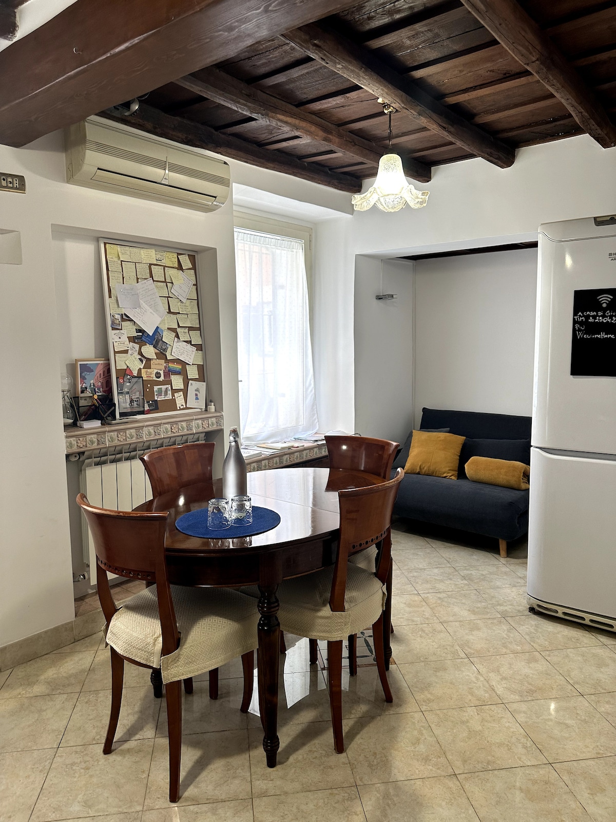 WI-FI free & cozy smart working place. Charming one bedroom apartment of about 50 sqm, located on the corner of Campo de' Fiori and on the second, top floor of an ancient palace of the 15th century, famous for having been for a century the "Inn of the Cow" owned by Vannozza, courtesan and lover of Cardinal Rodrigo Borgia. Strategic location, easy walking distance to reach the most interesting historical and culinary sites of the city center. Finely renovated, fully equipped and comfortable.
