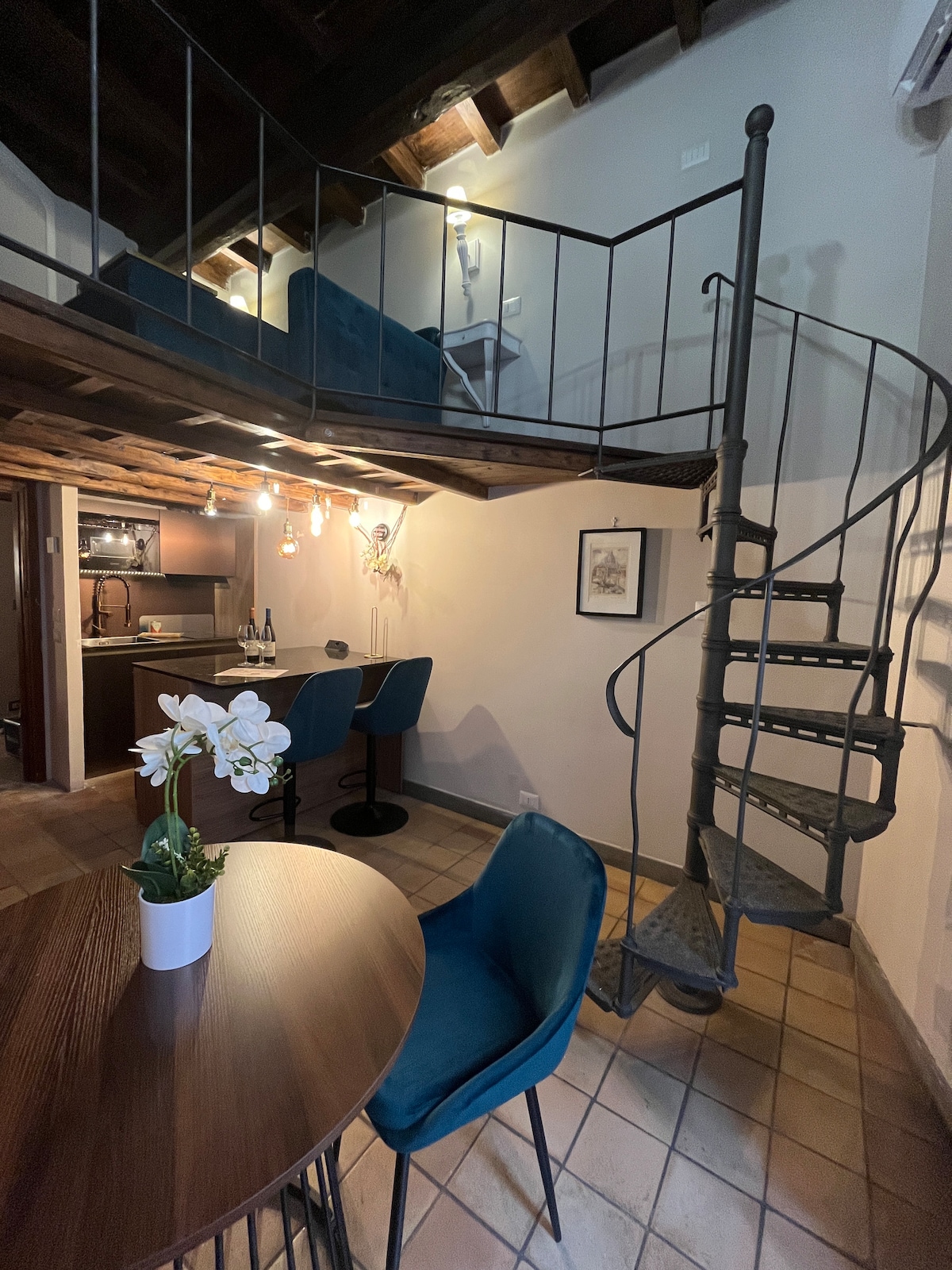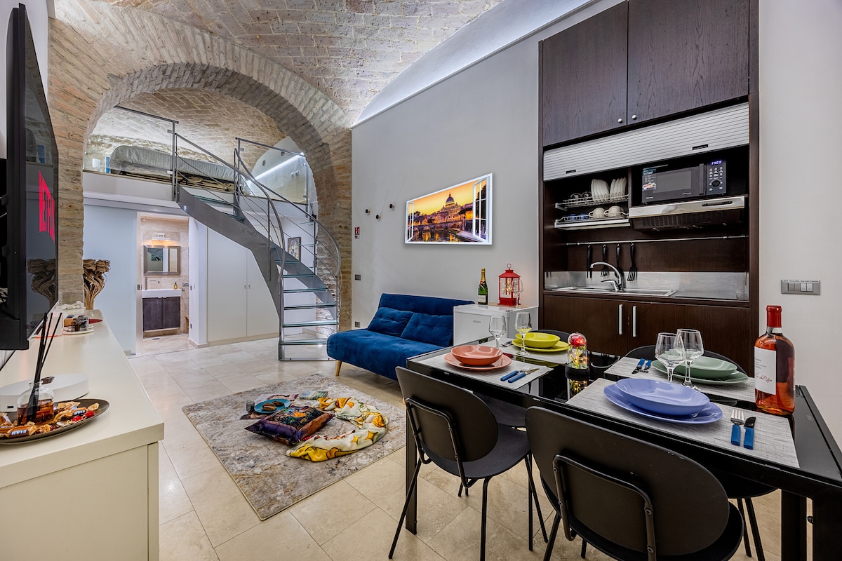 Best loft in the most amazing central location: you will be in the most central area of Rome.. with no need of using public trasportation. everything is at walking distance. The loft is divided into: 1) sleeping area: lower level, bathroom with shower and a beautiful balcony. Above a double bed, wardrobe. 2) living area: kitchen with peninsula. 3) a "movie theatre" with a 75-inch TV, 2 chaise longues that can become 2 beds, bathroom with shower.
