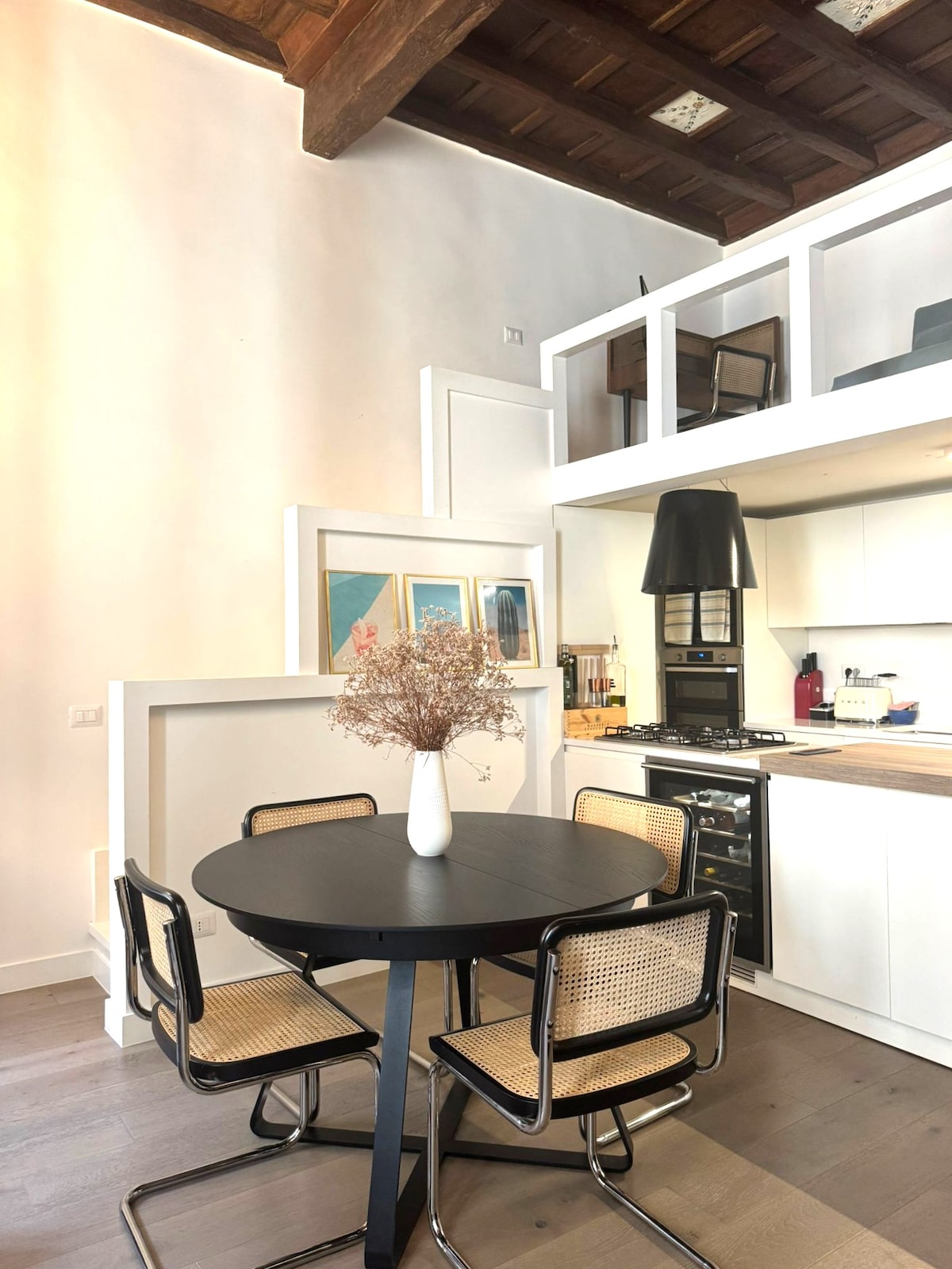 Bring the past to life in this recently renovated apartment located in the most central part of Trastevere. It is characterized by a beautiful original ceiling with antique wooden beams restored to their natural honey color, a mezzanine with crystal inserts, XIXth century antique furniture, internal views of a beautiful garden below. Is a cute combination of the charm of the past with the inclusion of well-chosen modern elements which, will make your stay both fascinating and comfortable