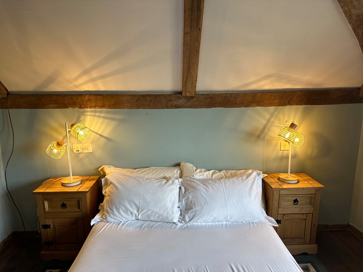 Accommodation is unique and positioned in quiet Loke in the centre of Loddon town. 12 miles from Norwich, 14 from beaches. Part of a barn-conversion, the room has private entrance. Traditional English beamed ceiling, bright with window and double French doors overlooking lovely garden ( which you may use). Double bed, small wardrobe plus additional pegs for hanging. Table, chairs. Shower en-suite. Small breakfast bar/ work area. Kettle, fridge, continental breakfast supplies/utensils.