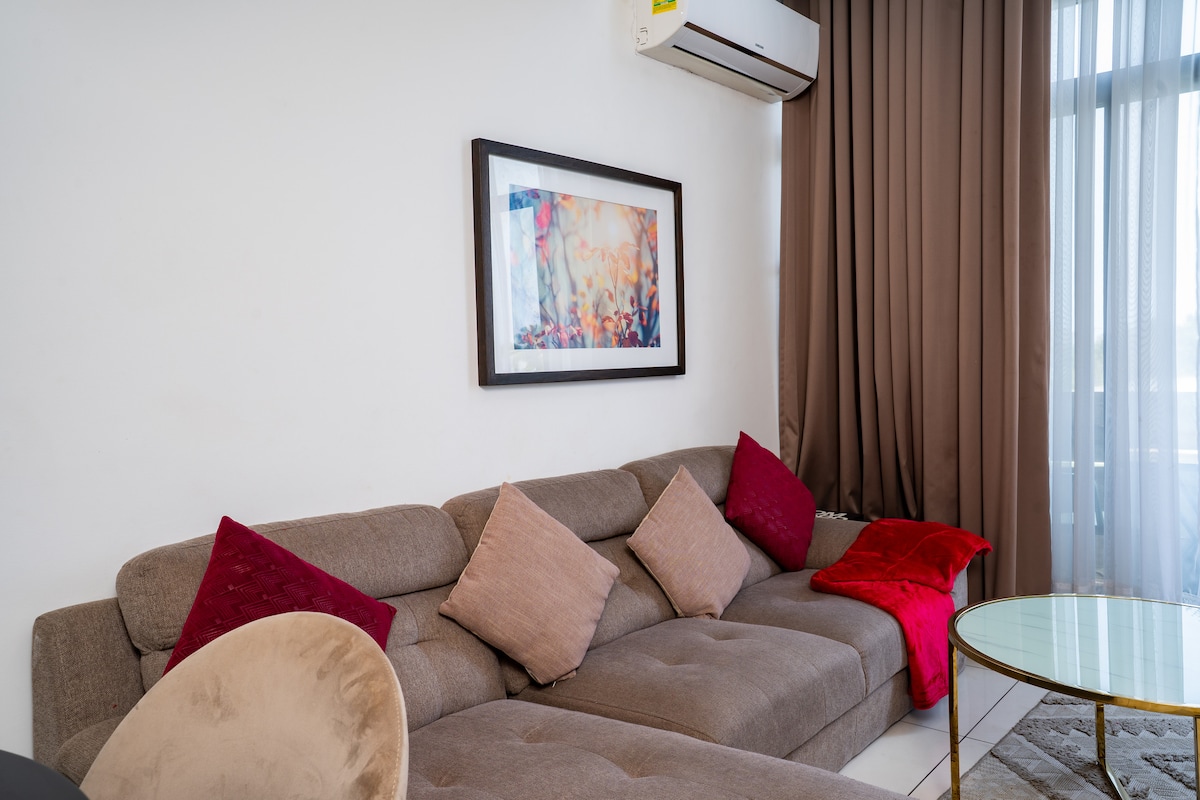 Your extraordinary Accra experience begins here. Book now and see why guests say ‘home away from home only gets better.’ Access to rooftop pool and gym. This stylish unit in Airport Residential offers hotel-level comfort. Enjoy a queen bed, vibrant yellow sofa, smart TV, fast Wi-Fi, cool AC, kitchenette, and a calm balcony. Walk safely to Airport City, restaurants, malls, cafés and Roman Ridge. 5-10 mins drive to airport. Perfect for business travelers, couples, solo guests and weekend escapes