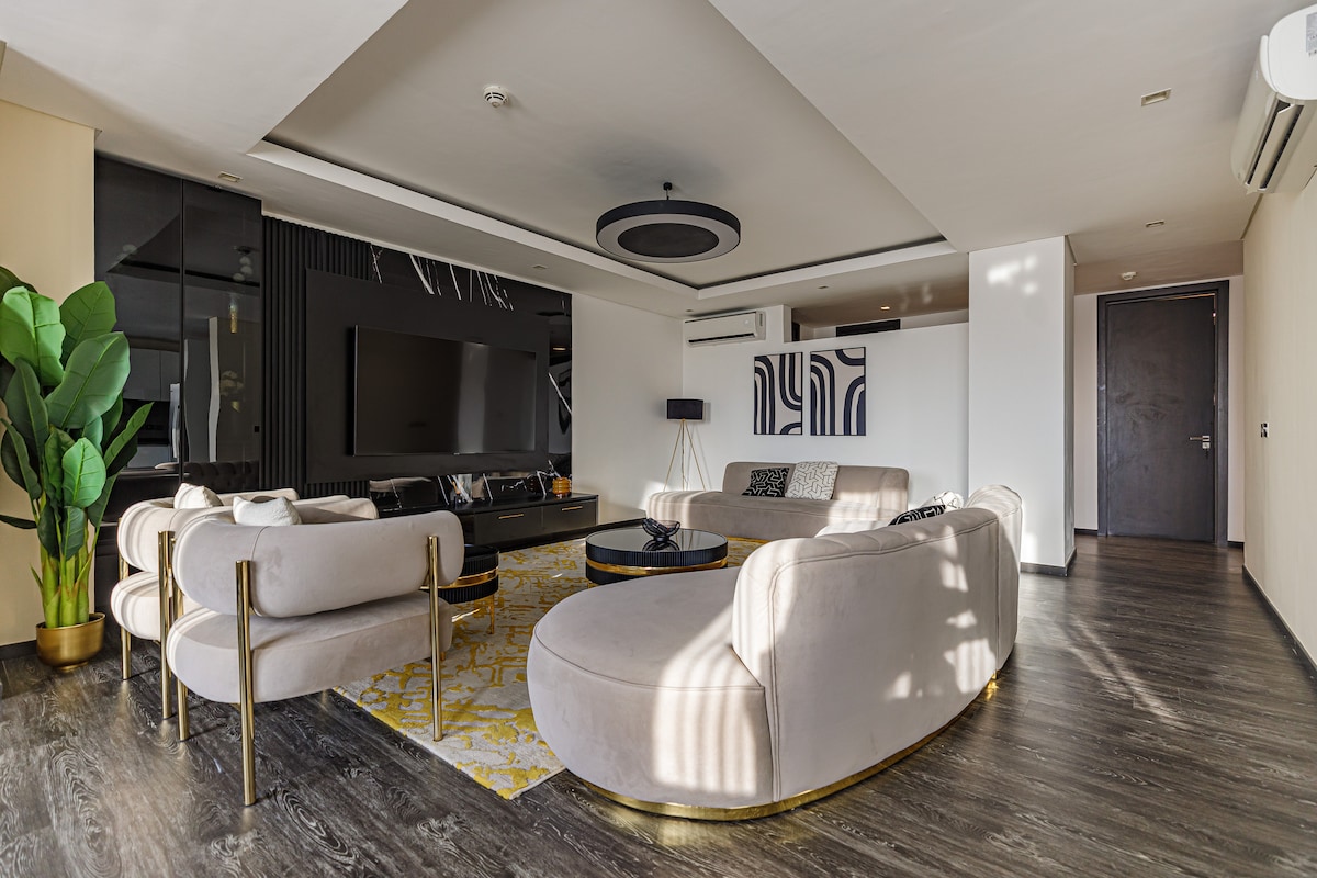 Relax in this stylish three-bedroom apartment at Villagio, Accra. It features a spacious living area, a fully equipped kitchen, and beautiful city views in a serene, secure setting. Centrally located and just a five-minute drive from Kotoka International Airport, with access to a swimming pool and key city attractions nearby, ideal for business or leisure stays.