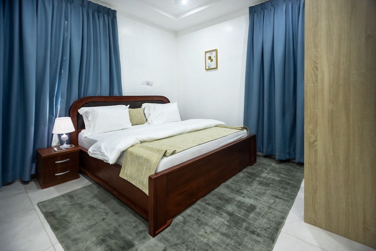 Our modern 2 Bedroom - 2.5 Bathroom Apartment offers the perfect blend of comfort, convenience, and community. The apartment if full suit with everything you need. -24/7 security for your peace of mind -Backup Generator to ensure uninterrupted power supply -Reliable water supply and internet connectivity - Club House -Pool/Gym/Garden/Water Fountain -Air conditioning for a comfortable stay - 15 minutes from the airport -5 minutes from hospital, grocery store, etc -onsite office management