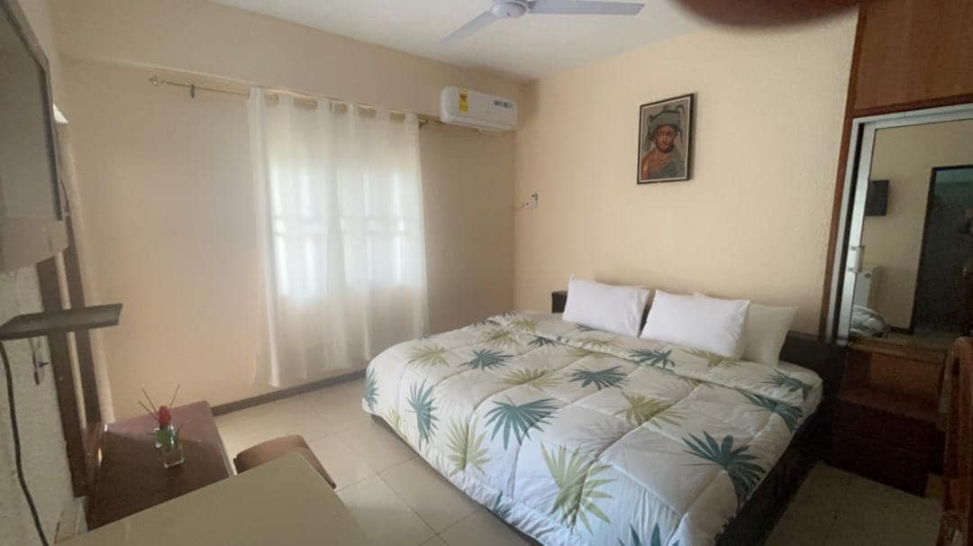 Welcome to your private 1-bedroom guesthouse in Cantonments, one of Accra’s most secure and desirable neighborhoods. This modern retreat offers a bright bedroom with queen bed, cozy living area with smart TV, sleek bathroom with hot water, and a fully equipped kitchenette. With air conditioning, reliable high-speed WiFi, and 24/7 security, you’ll enjoy both comfort and peace of mind. Just minutes from embassies, restaurants, malls, and Kotoka Airport.