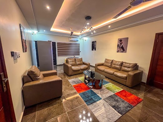 The place is very close to the airport about 4.9km (11mins) . The apartment is very close to the university of Ghana. It’s a 2-3 minutes drive. We have a lot of good restaurants around like De’lish, papa’s pizza, Yah, coffee shop, KFC etc It’s also close to the mall. 24/7 security service. It has a serene Serena environment. Also you and your partner has the entire apartment to yourselves. We have cars that will take u for tour in Ghana