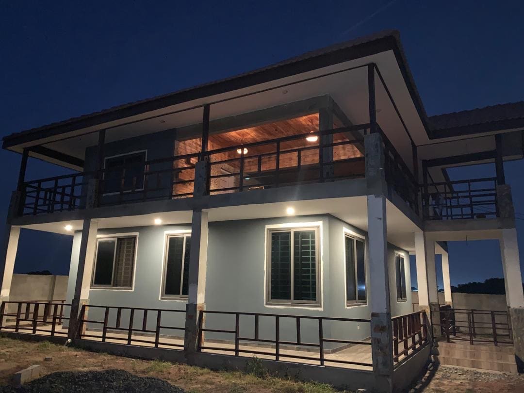 Escape to our serene 3-bedroom house in Lakeside, Ghana! Perfect for families or groups. Each room with comfortable beds and en-suite bathrooms. Fully Equipped Kitchen with modern appliances. Flat-screen TVs and Wi-Fi for your entertainment needs. Enjoy the spacious garden around the house, ideal for kids to play. Close to local attractions, shopping, and dining and less than 5 mins drive to Lakeside Marina Park. Powered by Solar and electricity, so never experience power outage.