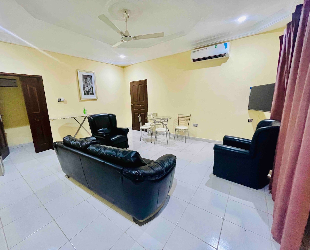 Newly built 2 bedroom at an excellent location. Welcome to our beautiful 2 bedroom apartment in the vibrant East Legon neighbourhood of Accra. This modern and spacious apartment is perfect for either business or leisure travel. The apartment features a stylish and comfortable living room, a fully equipped kitchen and 2 cozy bedrooms and private bathrooms. Step outside and explore the lively neighbourhood with it's trendy cafes and bustling markets. The airport is just 20 minutes away!