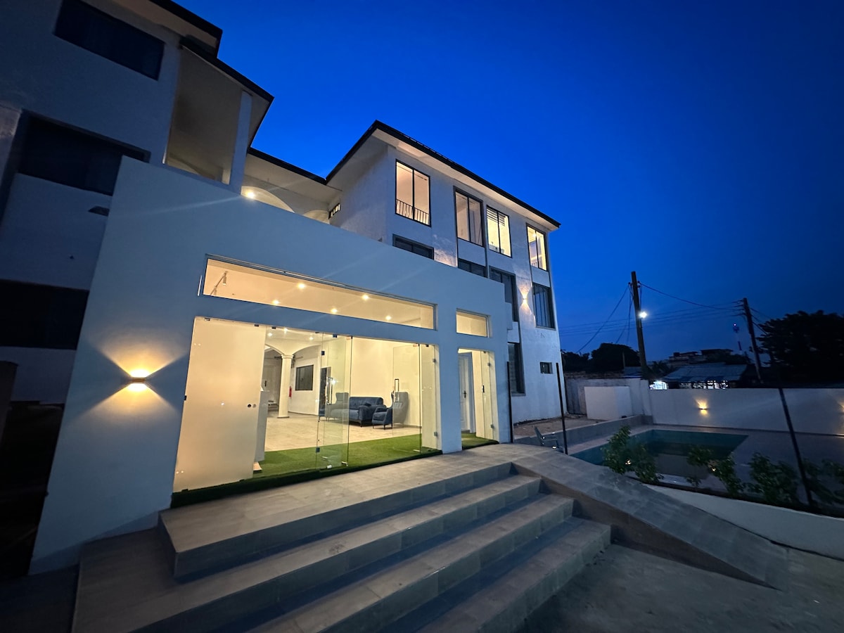 Enjoy the glamour of this stylish, upscale home. You are always steps away from the beachfront. Less than a hour from Accra! With big bay windows the ocean is at your doorstep; and should you choose you have the ability to enjoy the gentle sea breeze on the rooftop or at the lower level to dip your toes in the sand! Truly a serene, picturesque setting with lots of privacy! Guests can host get togethers in downstairs lounge!