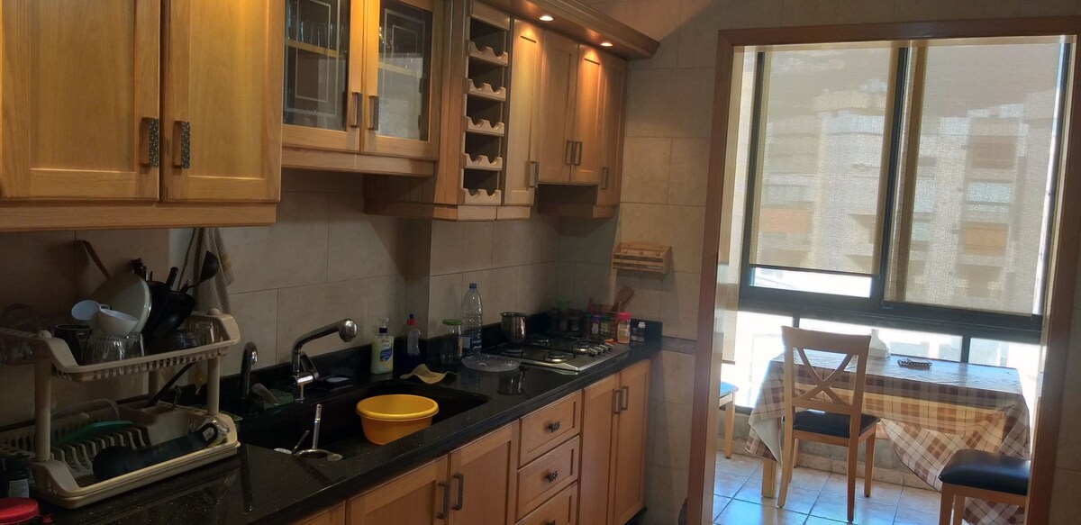 Welcome to our cozy apartment with a stunning Beirut coastline view. -2 Bedrooms (1 king bed - 2 single beds) -3 Bathrooms -Spacious Living room -Kitchen: Fully equipped. -1 Enclosed & 1 Open Balconies Within 10m: -24/7 grocery shop (dekkene) -Canadian burger snack -Local bakery (furn) Additional features: -Massage Chair (free) -Panoramic Views: Sea, mountains, Beirut, and highway. -Shisha Cafes & Restaurants: 20m away. -Appartment Freshly Renovated -Shopping: ABC, Le Mall, Spinneys market