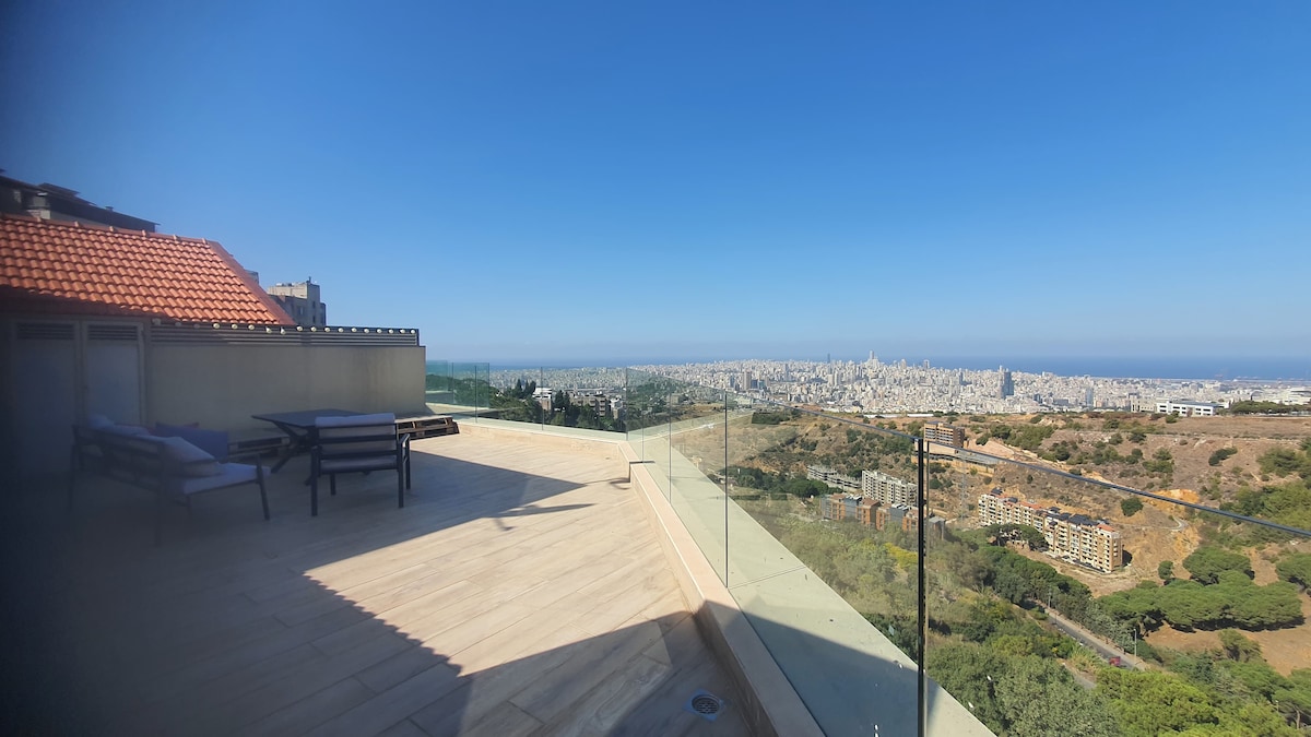 位于Brummana Views的现代五星级公寓,提供全天候服务