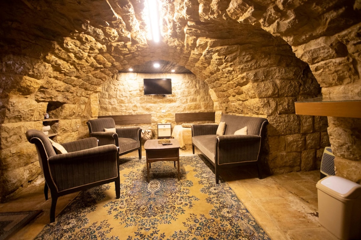 It's rare to find perfect blend between Historic,One-of-a-kind&Romantic,20 min from Beirut Int'l airport.The Cave offers Patio, BBQ, breathtaking views over Beirut city, garden & we assist from A-Z on site also have our Chill Bar&Resto-Pubs nearby.Peace Trail between our Christian Village Shimlan's Biblical Garden & Muslim Keyfoun's Village Quran's Garden in addition to amazing unforgettable activities in the surrounding.Breakfast/Meals/Drinks/etc. ordered onsite HOTEL SERVE YET HOME FEEL&PRICE