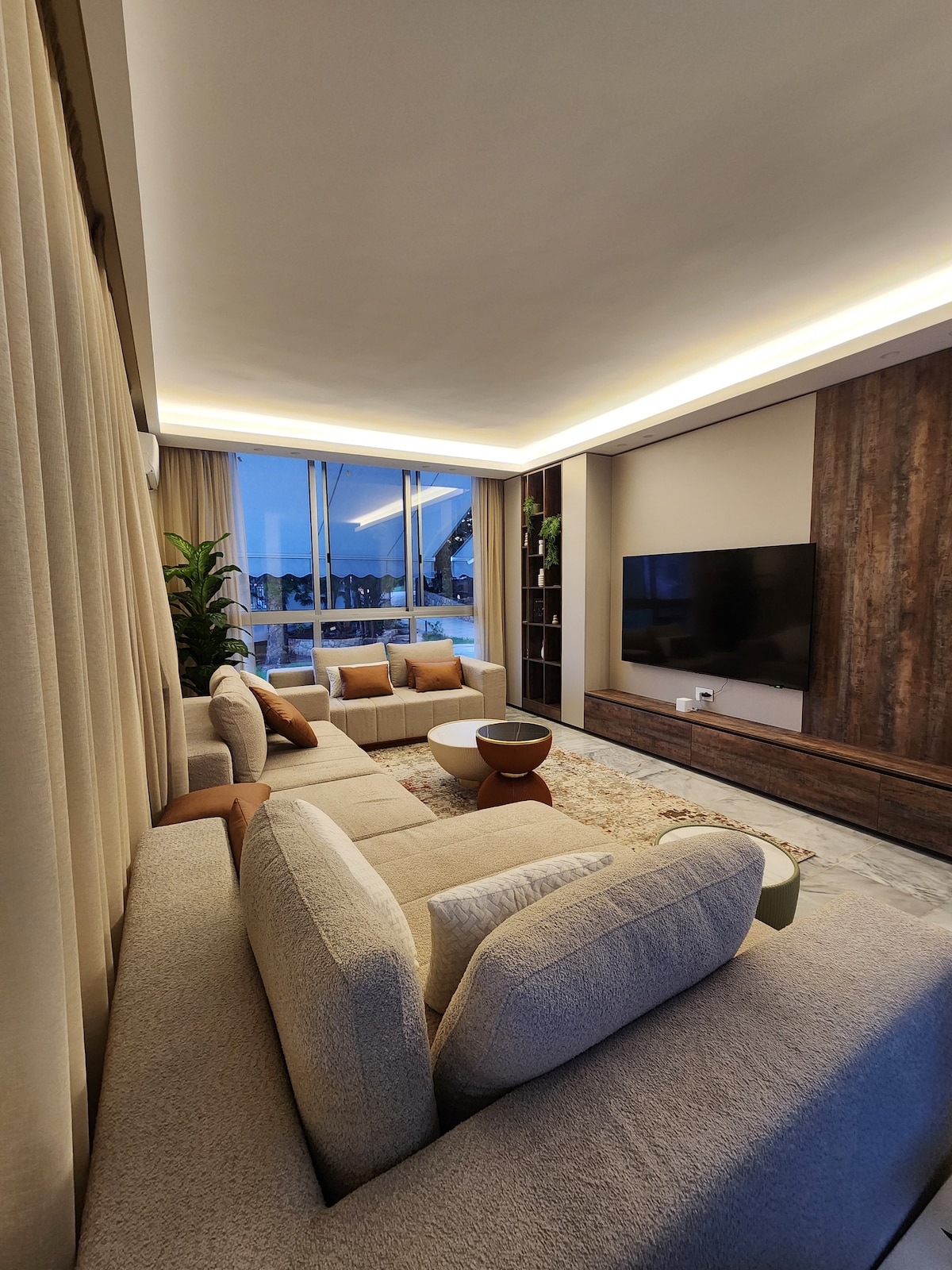 Modern 2-Floor Loft in the Heart of Khenchara – 2 Bedrooms 🌿 What you’ll love: • Spacious & airy — open-plan living room with high ceilings, elegant lighting, and marble-look floors. • Designer kitchen — matte-black cabinetry, glossy countertops, and fully equipped for cooking. • Cozy living space — plush L-shaped sofa,fireplace, and a warm, inviting atmosphere. • Dining area — modern table with seating for six, ideal for meals or work. • Two comfortable bedrooms (1 AC) • Scenic location