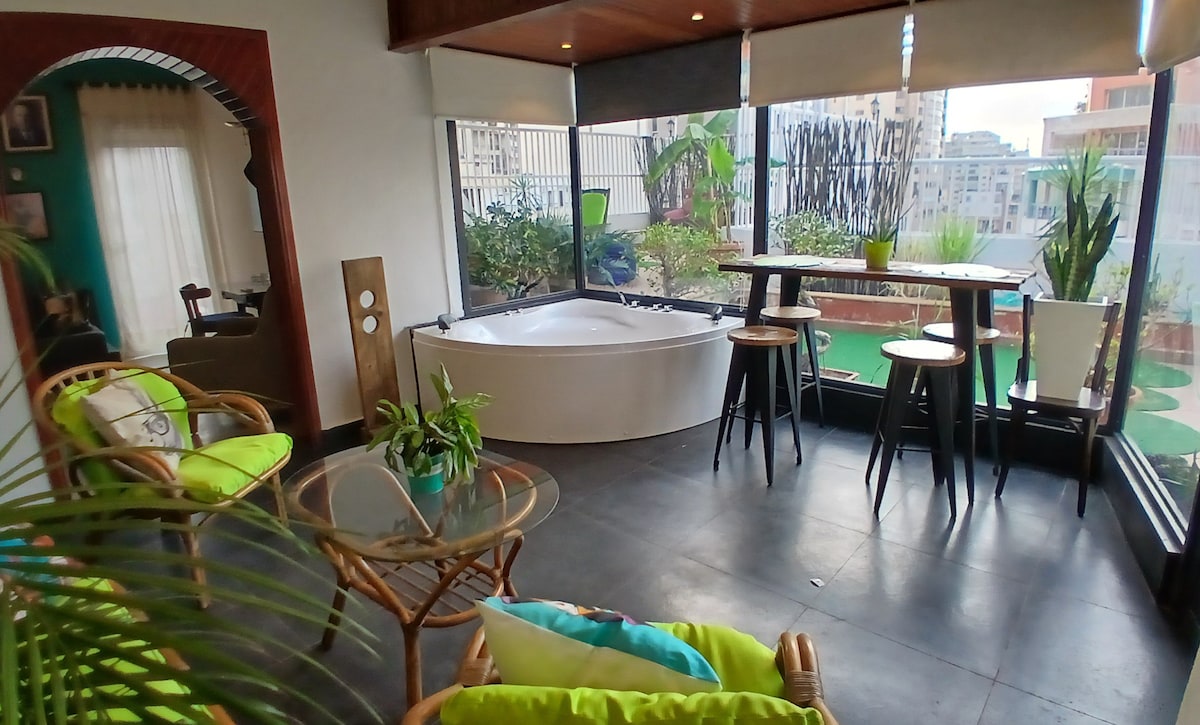 Welcome to this modern, industrial one-bedroom flat situated in Achrafieh, where you can wander around the area and then sip your freshly brewed cup of coffee in one of the cafes down the street. A copy of the passport is required upon check-in. Please be advised that the rooftop and the Jacuzzi have no ceiling thus they can't be used during rainy weather.