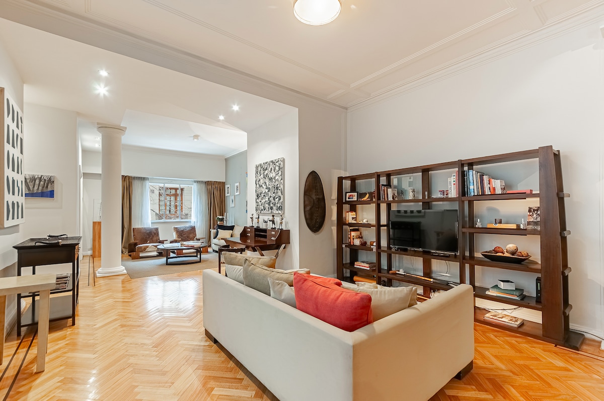 Perfect place for those who love green areas, museums, elegant residences, sophisticated decoration. The neighborhood is plenty of embassies, iconic monuments, and museums, and it is close to the heart of Recoleta. Public transportation (trains and buses) are available at walking distance. Ezeiza airport (international) is one hour in average from the apartment by taxi, and J. Newbery airport (national) is 20 minutes by taxi. It's important to mention that the building do not have elevators, so you will have to step two floors by staircase. The housekeeper will be in charge of the check-in and check-out and she will be available for helping the guests in whatever they need. Additionally, she will be able to make extra cleaning services (full cleaning to the apartment, washing dishes, refresh of sheets and towels, etc.) subject to previous guests request to the host (Guillermo) by AirBnb app. The extra cost is US$40 per day. This area of Recoleta is on the edge of an upmarket area called "La Isla". The apartment is half a block from the National Library and in front of the Book and Language Museum. There are also some great neighbourhood restaurants not far away. Av Las Heras is an artery with a great variety of buses that can take you to any part of the city safely and at low cost (on the desk of the bedroom you will find SUBE cards, which you can charge money in a kiosk located in Tagle between Pagano and Libertador - Please leave them in the same place when retiring) Also the apartment is located to three blocks from the underground Las Heras station (Line H) that connects with all the network of "subtes" of Buenos Aires. For taxi use, I recommend using the Uber or Cabify applications. Mr. Arnaldo Duarte is the doorman of the building, he counts with my all trust and he will be able to collaborate with the guests needs as well. The apartment is equipped with a safe-box in the closet of the bedroom, instructions to use it will be provided by the host (Guillermo) directly by email, wapp, or txts (reserved information) after the guest request.
