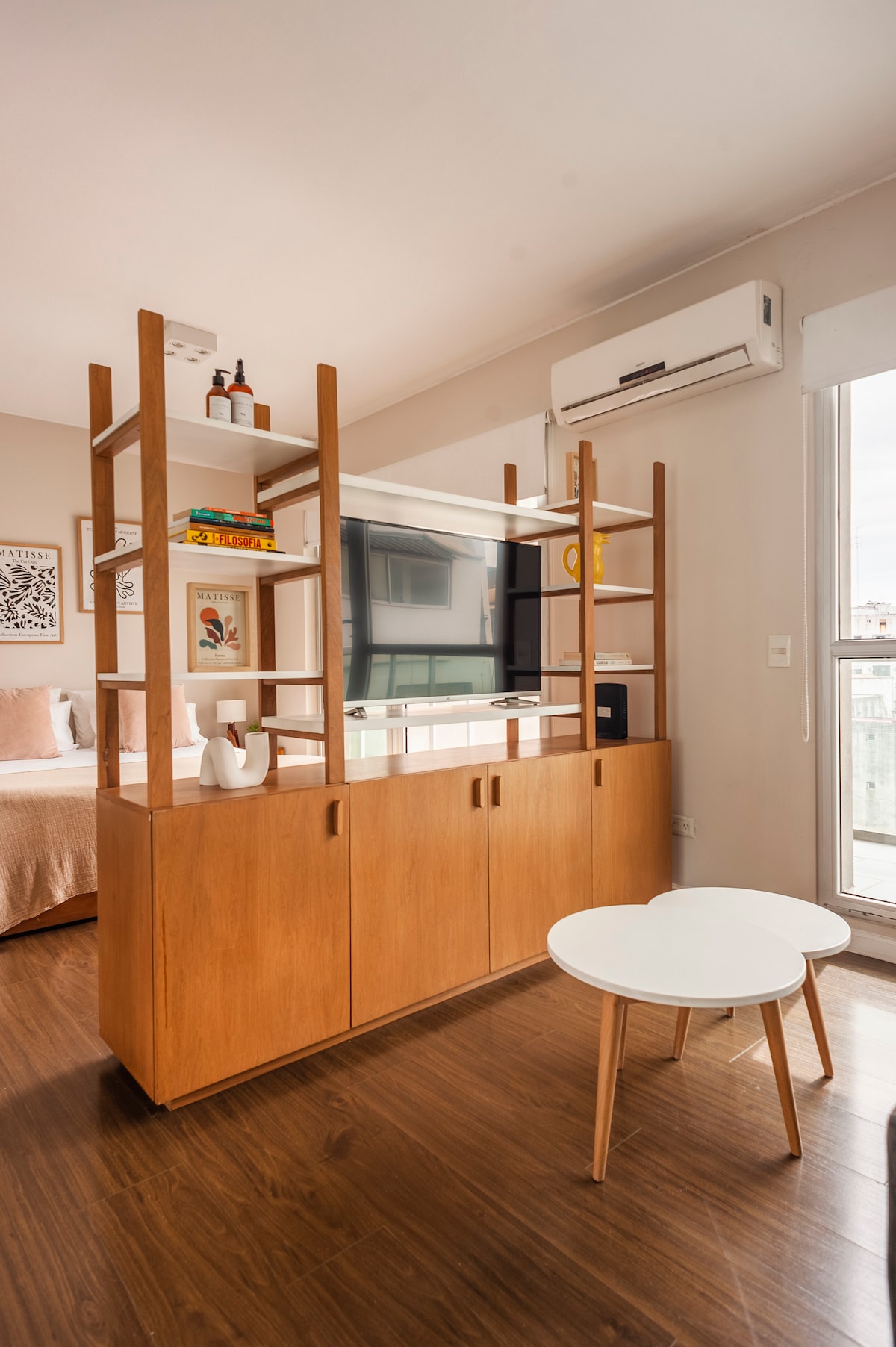 Brand new studio apartment with kitchinette, bathroom and balcony with great views in the heart of Recoleta. Cool modern decoration, fully equipped and safe. SmartTV with cable and Netflix (login with your account). Building with great facilities: heated indoor pool, outdoor pool with solarium, spa with massage room and sauna, and gym. Walking distance to the best restaurants, bars and cafes, as well as to bus and subway station.
