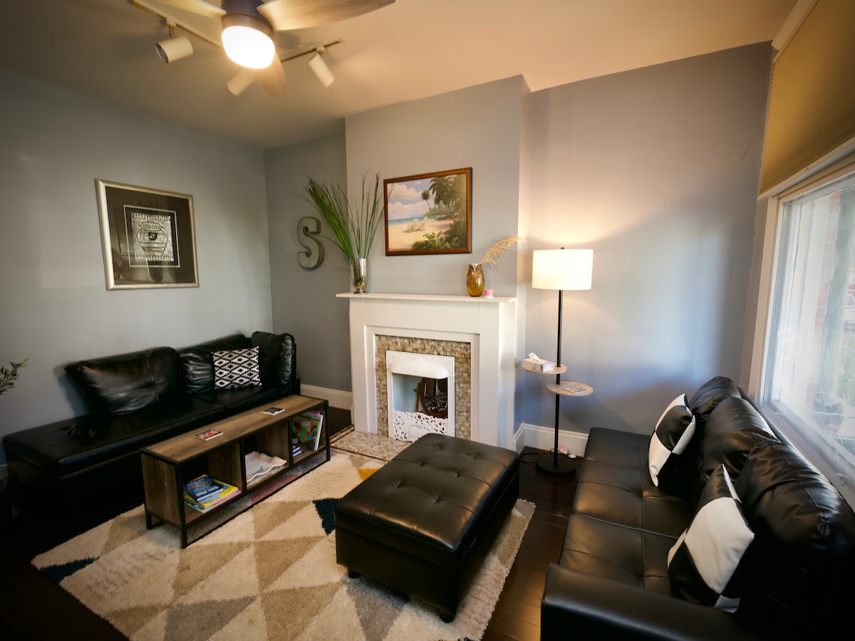 Our Boutique Luxury Brownstown provides guests with first class ammenities and style, while being one block from High Street and heart of the Short North with restaurants, shops + bars. Renovated in 2022, the space features original, refinished hardwood floors with a gorgeous stair, high end kitchen finishes with quartz tops, and two private en-suites with modern tile and oversized showers weith bench seats. If you are looking for an boutique experiance, there is nothing better in Columbus