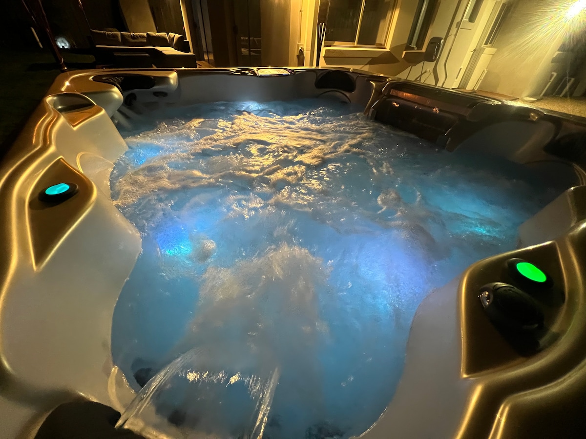 Luxury retreat in Patterson Lakes, fully renovated two-bed gem. Enjoy mornings on the deck amidst nature, or evenings in our 6-person hydrotherapy spa. The designer bathroom features a lavish bath and expansive shower. Our spacious kitchen and dining area boasts a large Netflix-ready TV. Sleep soundly in the master room, complete with a luxurious queen bed and TV. For work, our private office offers high-speed WiFi. Start your day with a coffee then walk down to seaford wetlands.