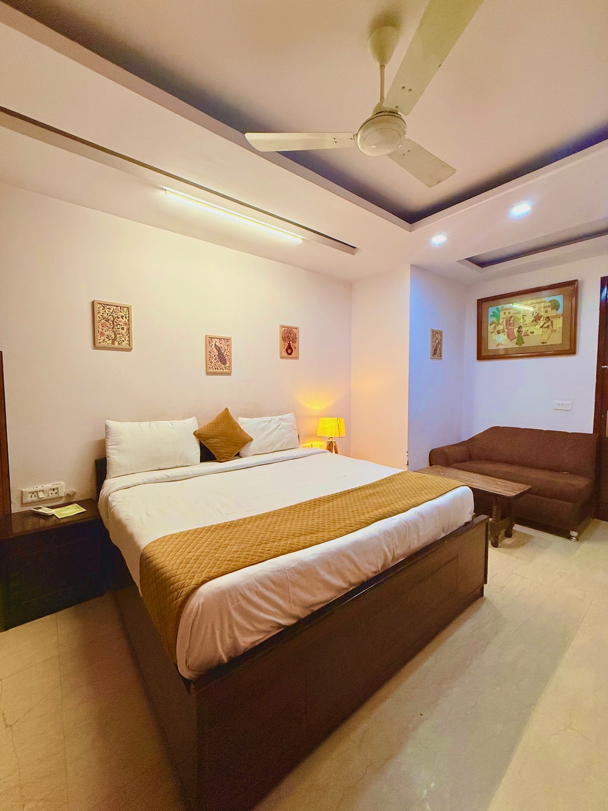 - 1 Bedroom apartment with attached kitchenette and bathroom. - All the necessary amenities for a seamless experience. - Fully equipped with essential appliances and utensils - Fresh towels and toiletries. - Wifi with 55' inch TV (including Netflix, Amazon prime & Hotstar etc). - 6 km from IGI Airport, New Delhi. - 1.3 km from Indian Aviation Academy. - 1.4 km Indian Spinal Injury Center. - 3 km DLF Emporio Mall, Vasant Kunj. - 4 Km from Fortis Hospital, Vasant Kunj.