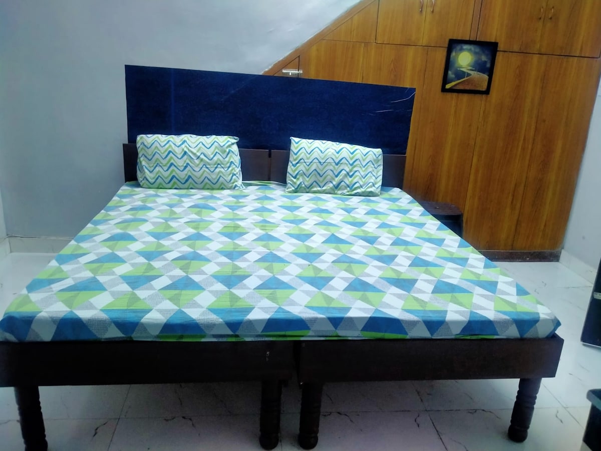 Cozy budget stay with all amenities- bathroom and kitchenette (microwave, cook-top, refrigerator, RO, utensils etc). Unique jazzy musical design, instruments and TV(netflix,prime,hotstar,zee,sony) available for recreation. Central location near sector 18, DLF mall of India, metro train at walking distance, wonderful location for foodies as amazing BP's street food and the famous Tea Shop and resturants within 500 meters. Night walks with ice cream stalls at 15 meters. Free parking right outside.